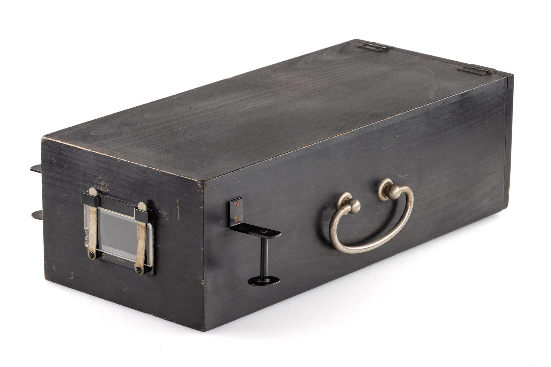 very rare, early Leitz enlarger - introduced with the Leica I Model A Elmax, for daylight enlargements to postal card size, 64mm fixed focus lens, in excellent condition (glass pressure plate slightly chipped), height 38cm, see Lager III 'Accessories' for reference