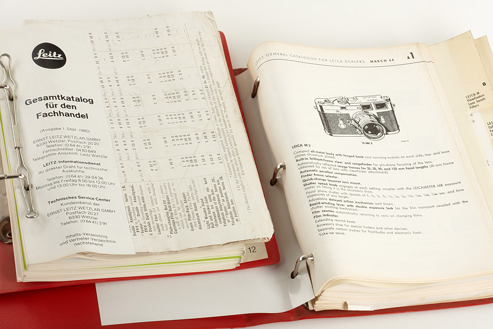 (1) Leitz Service Manual IIIf, (2) Leica Historica Volume I (Leica screw mount camera numbers), (3) Franchised Dealers Catalogue (1975), (4) The Collectors Check List of Cameras, Lenses and Accessories, (5) 8 different Leitz General catalogues (1953-1998), (6) Video Tape 'Design' Leica (13)