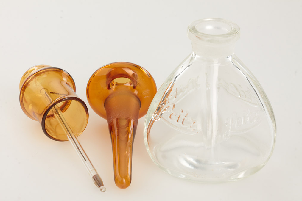 Leitz glass bottle for microscope immersion oil, made in the 1920s, illustrated in Van Hasbroeck 'Rare and unusual screw mount Leica cameras'