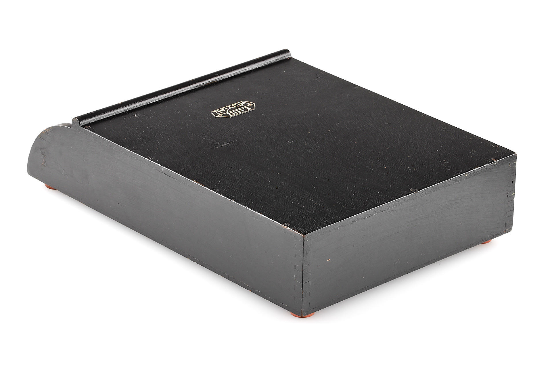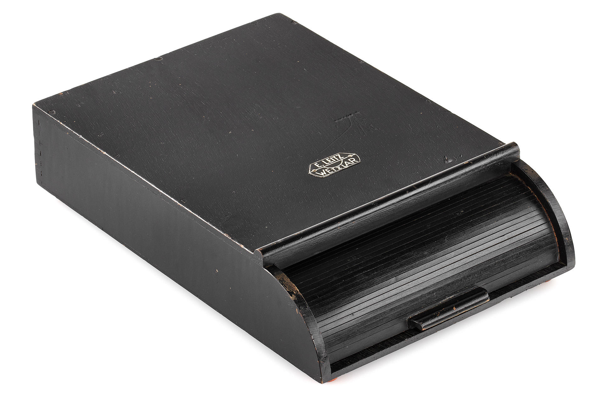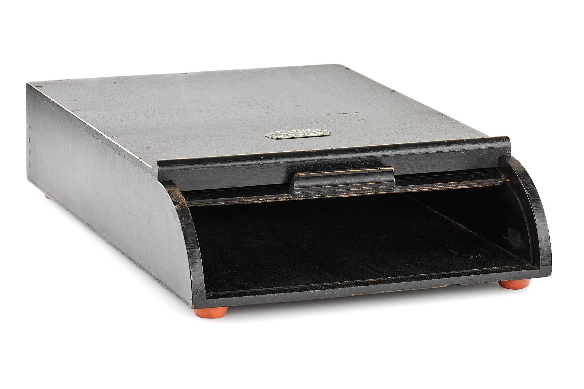 lightproof box for storing enlarging paper, in very rare medium size for 20x25cm sheets, spring-loaded automatic closing roller shutter, in excellent condition