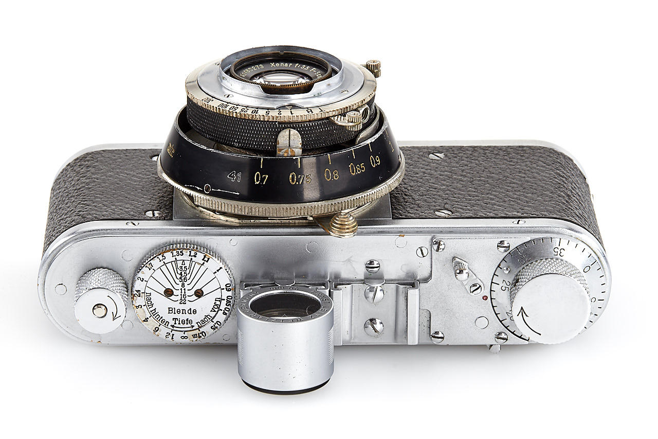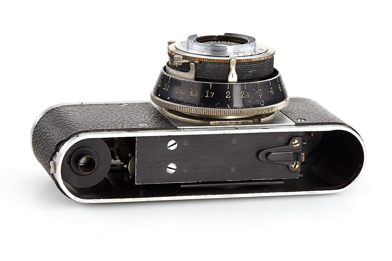 an interesting prototype camera based on a Leica Standard body, with several Leica parts used, with Xenar 3.5/5cm no.480273 in nickel helical focusing mount, a history of this camera shows connections to an ex Leitz employee