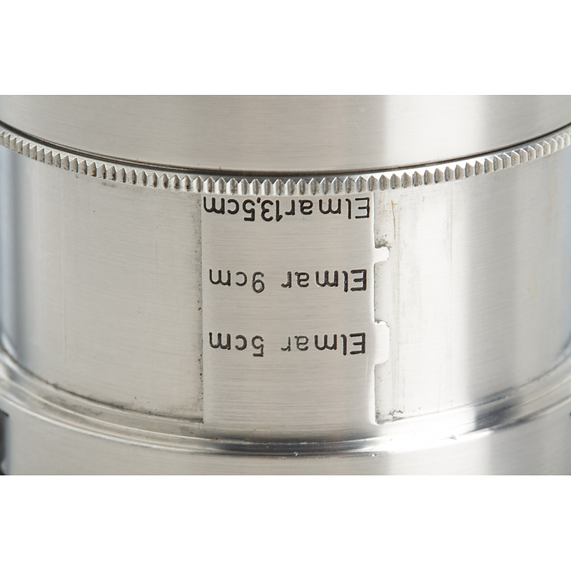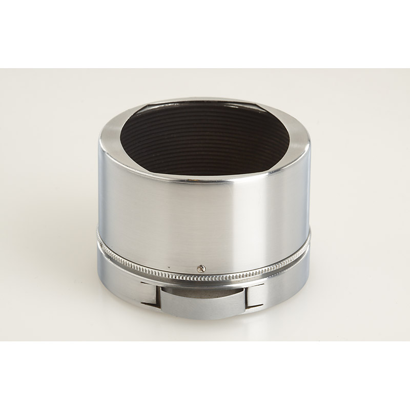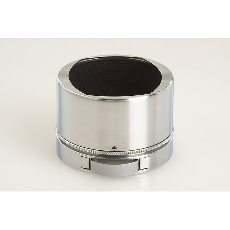 shiny chrome collapsible factory prototype hood for E39 Elmar 5cm, Elmar 9cm and Elmar 13.5cm lenses, 'oval' rectangular opening at front, totally different to any other Leitz hood Leitz