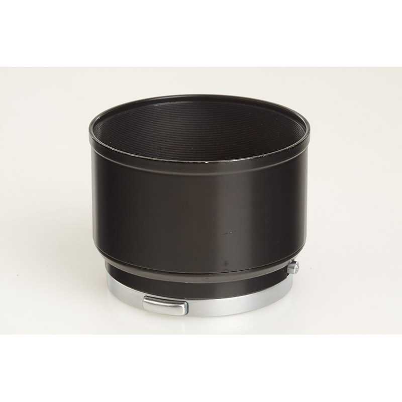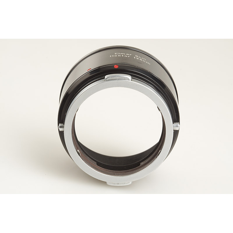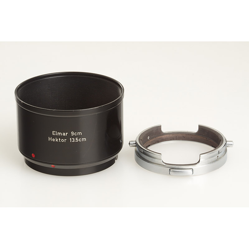 original black/chrome unique prototype hood for E39 Elmar 9cm and Hektor 13.5cm, can be separated in 3 parts (probably to accept lay-in filters)