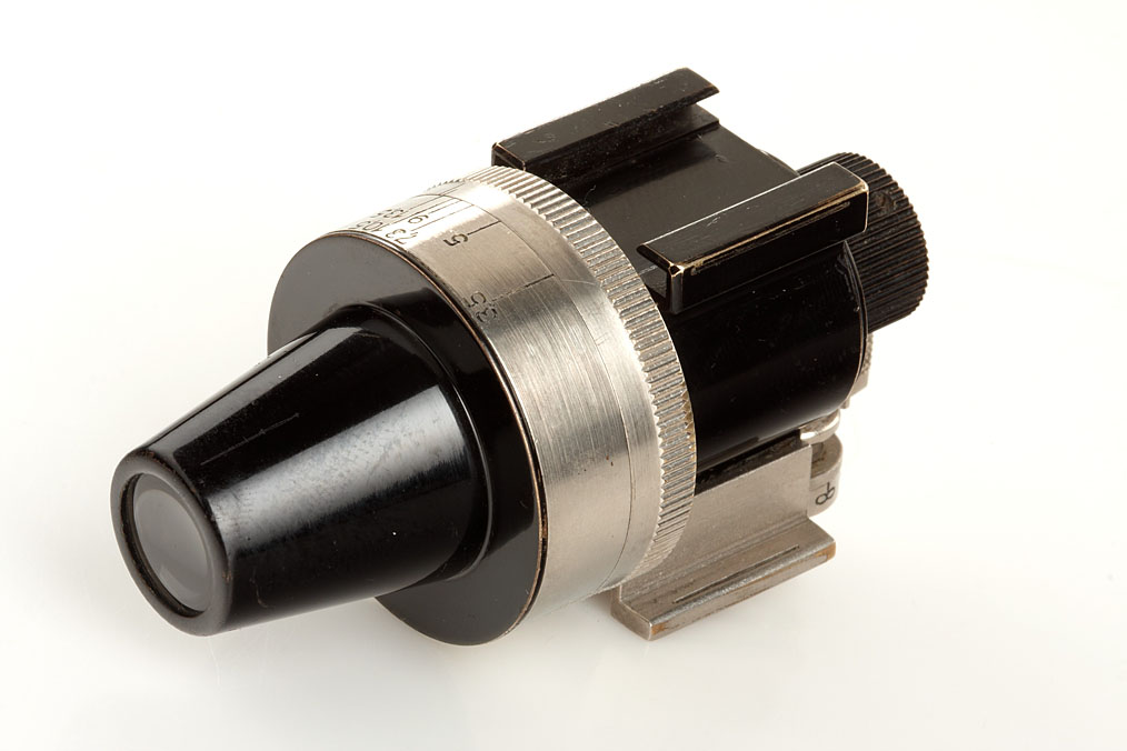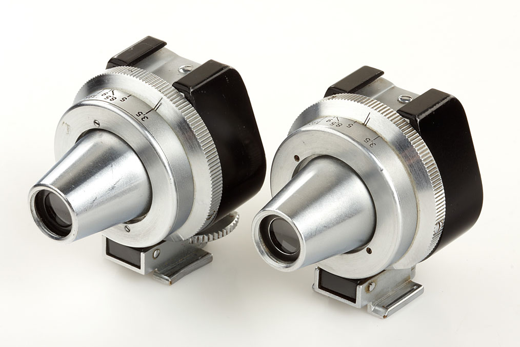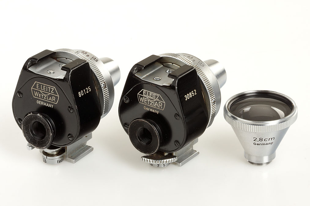 black/nickel VIDOM in good condition (Germany engraved on shoe, feet scale, red maker's box), five VIOOH universal finders (nos.30852, 42283, 64538, 68682 and 80125, some differences, two cases), TUVOO 2.8cm attachment (6)