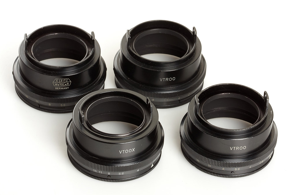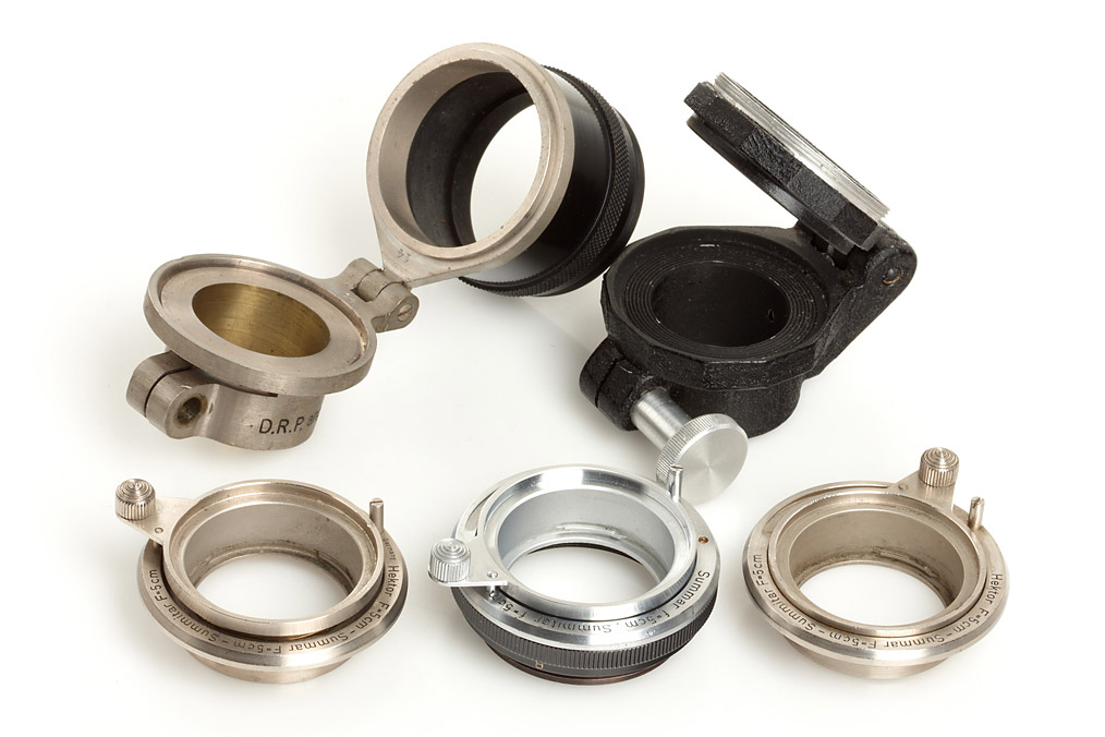 VSPOO helical focusing mount, ZOOXY helical focusing mount, helical focusing mount (no engraving, no bayonet), VXOOT helical focusing mount, VXZOO helical focusing mount in maker's box, ZQGOO helical focusing mount, ZOOXY Elmar bayonet, VTOOX aperture setter, three different VTROO aperture setter, seven repro rings, two microscopic adapters, two different nickel ZWTOO focusing mounts for Hektor 5cm, Summar 5cm and Summitar 5cm, chrome ZWTOO focusing mount for Summar 5cm and Summitar 5cm, 28 pieces M39 extension rings (50)