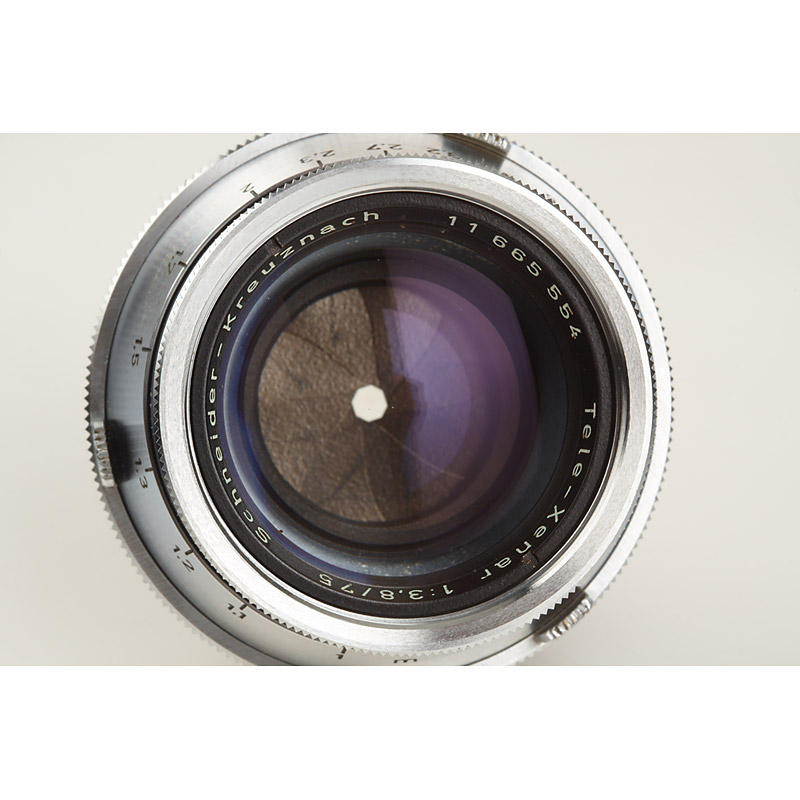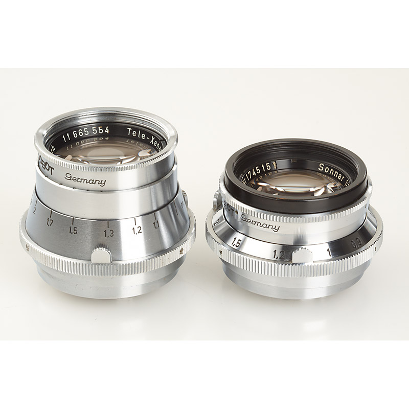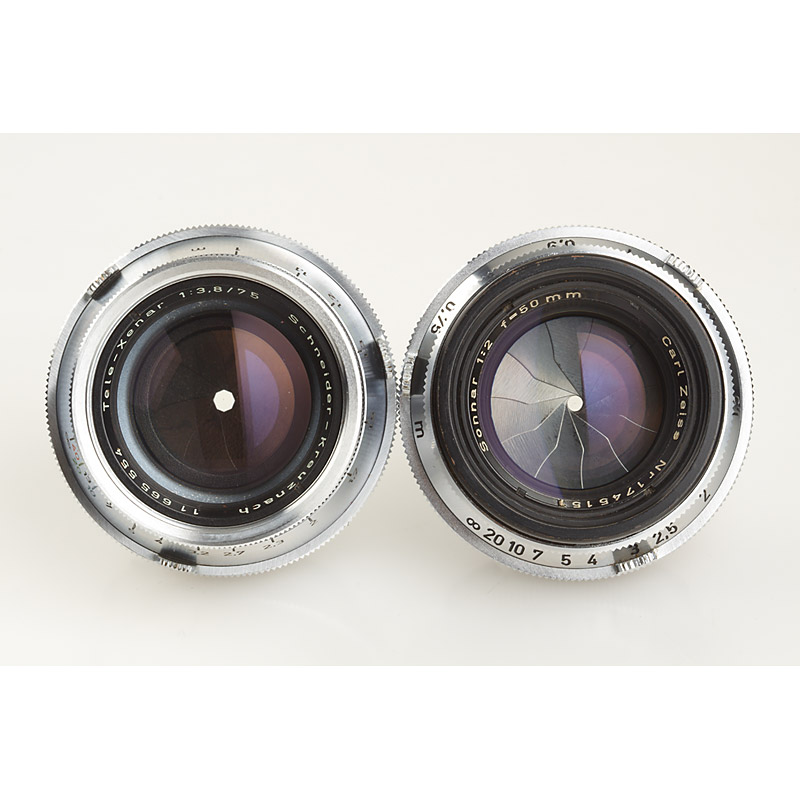 for Robot Royal, (1) Sonnar 2/50mm no.1745151 (clean lenses, keeper), (2) Tele-Xenar 3.8/75mm no.11665554 (clean lenses, cap, keeper) (2)