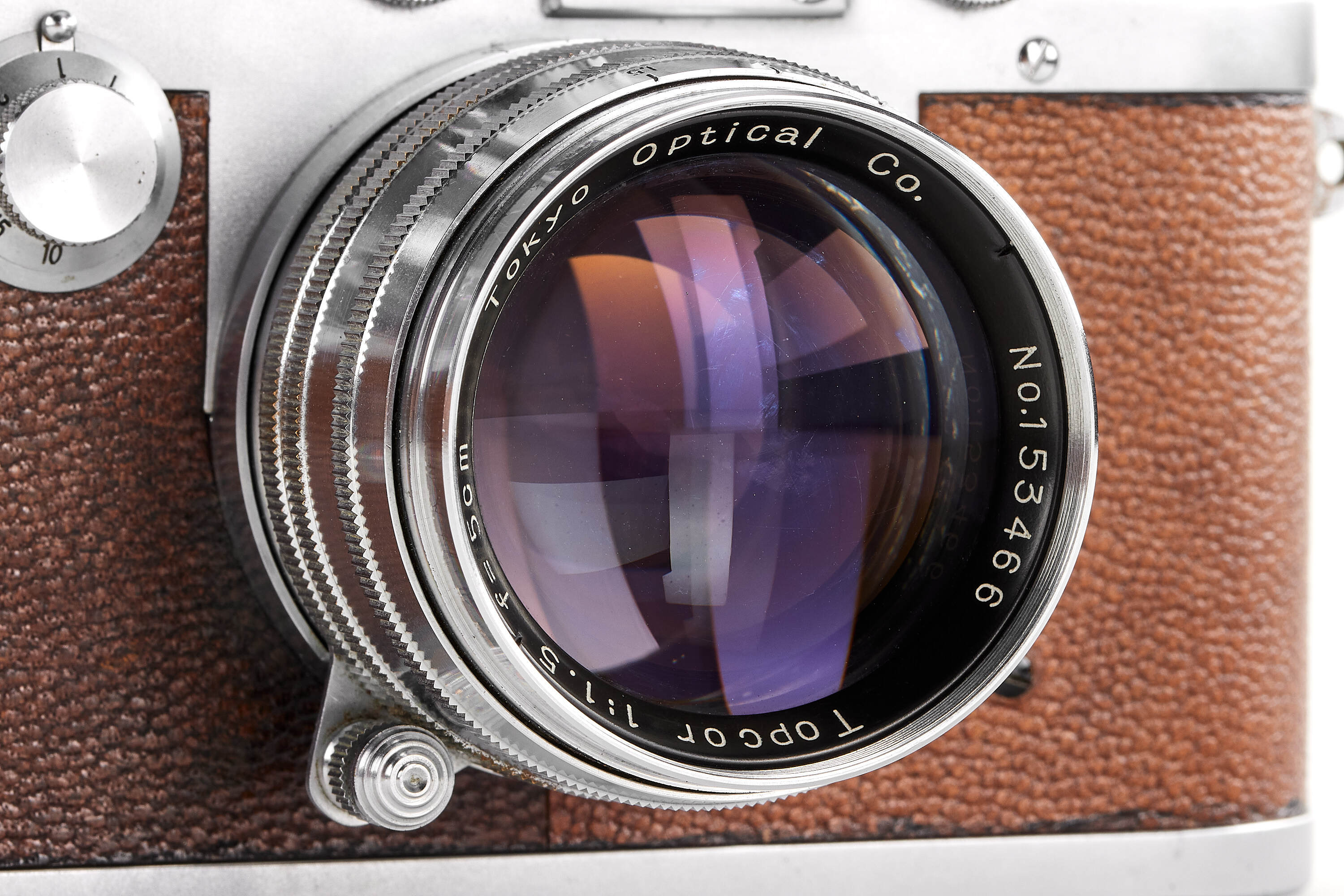 Beautiful Japanese Leica copy in good condition, showing a few traces of corrosion, with rare fast Topcor 1.5/5cm no.153466 with good optics only showing minimal cleaning marks.
