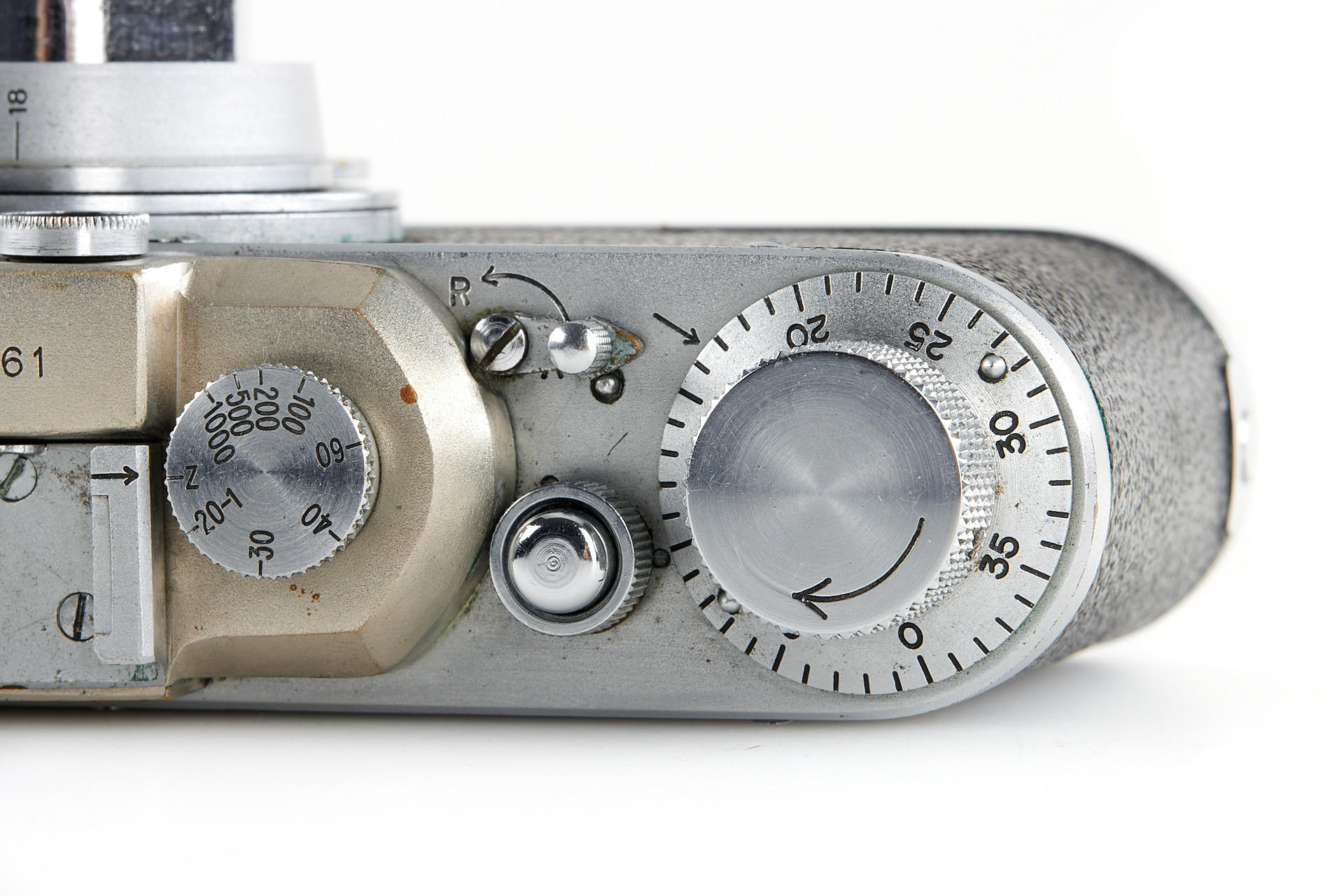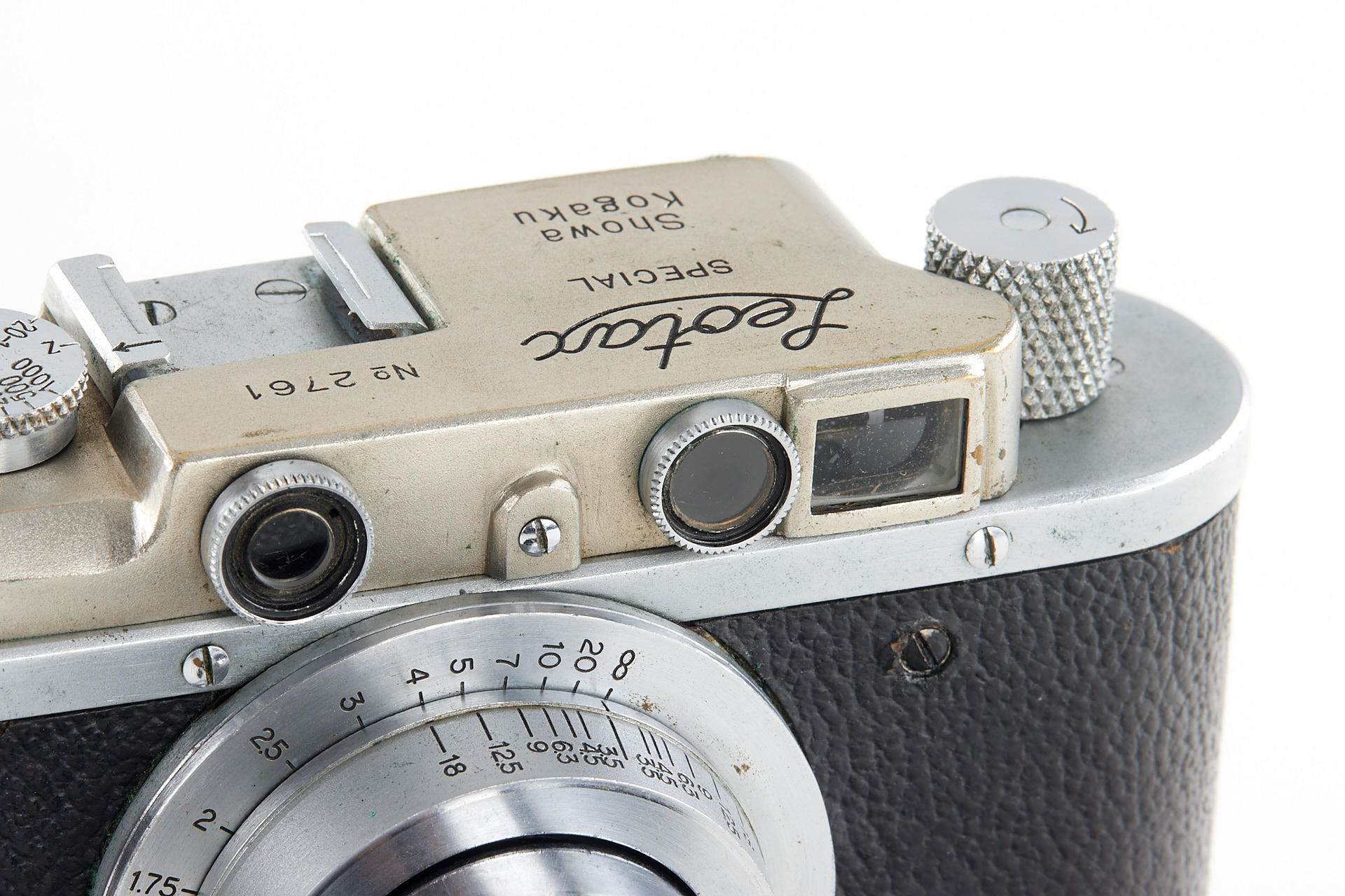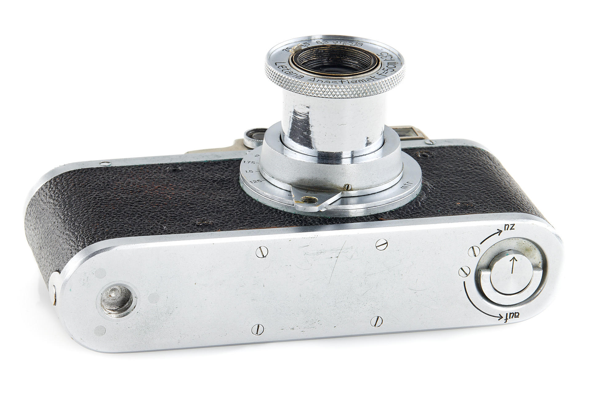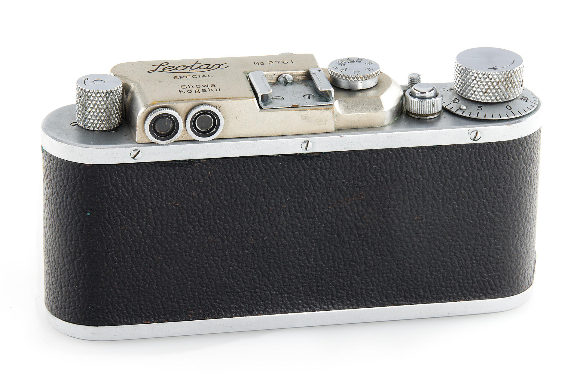 a very rare post-war Leotax Special, made in very small numbers from the available leftover parts of earlier Special A and Special B, in fine condition, few parts (base plate, speeds knob) non-original, with matching Letana Anastigmat 3.5/5cm in interesting, non-rotating collapsible mount (missing infinity lock)