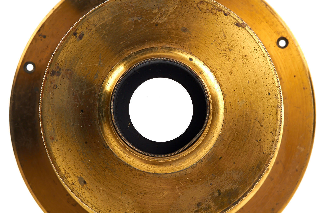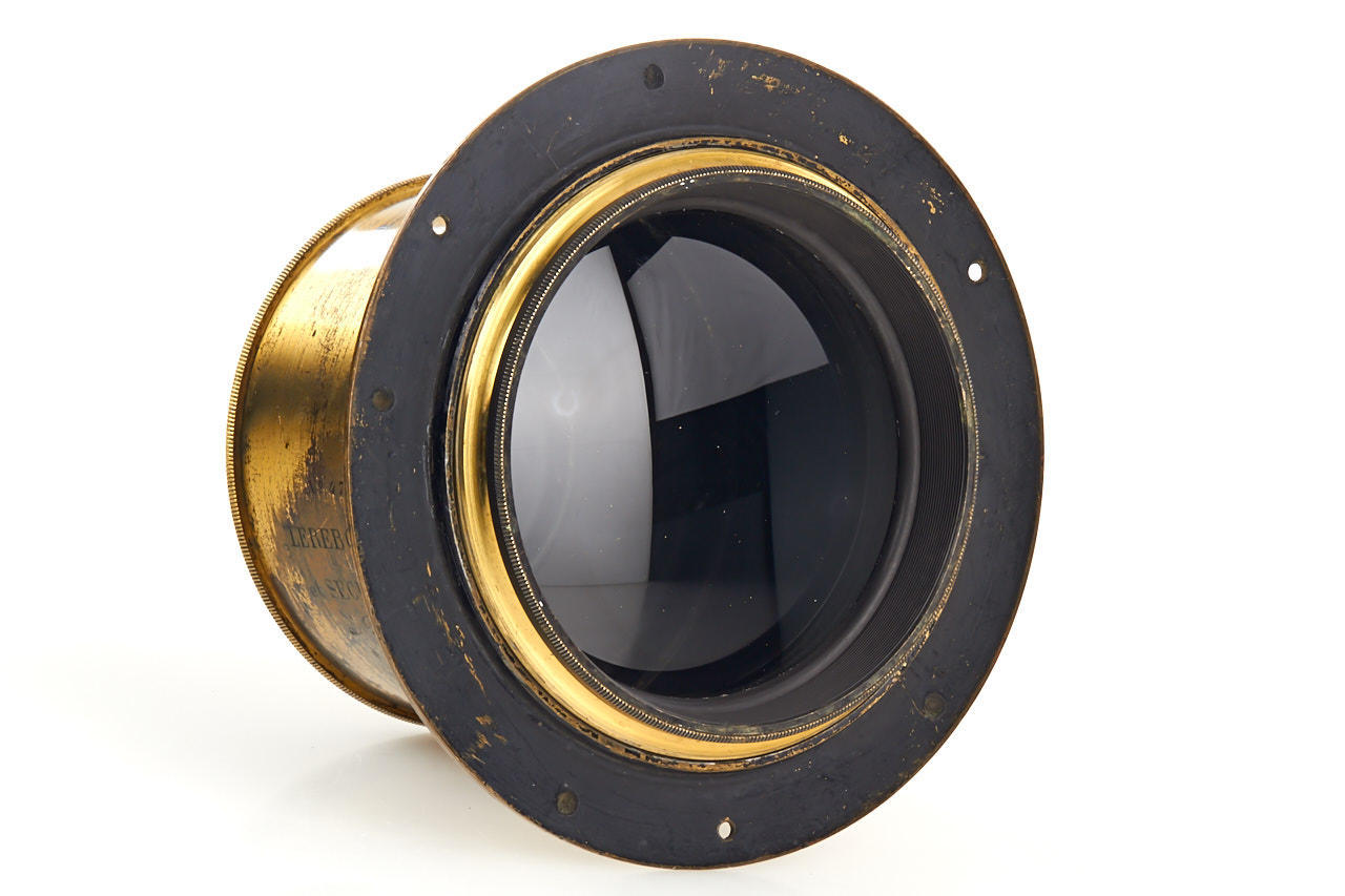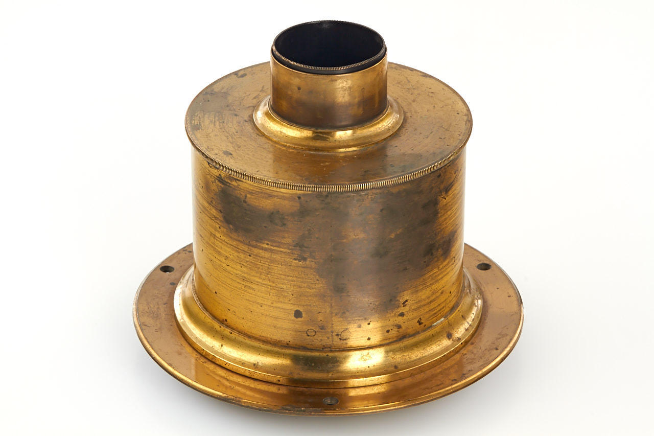 very early landscape meniscus lens from the famous French manufacture 'Lerebours et Secretan', focal length c.60cm, optics diameter 76mm, total height 11,5cm, in very good original condition, with brass front shutter cap and mounting ring