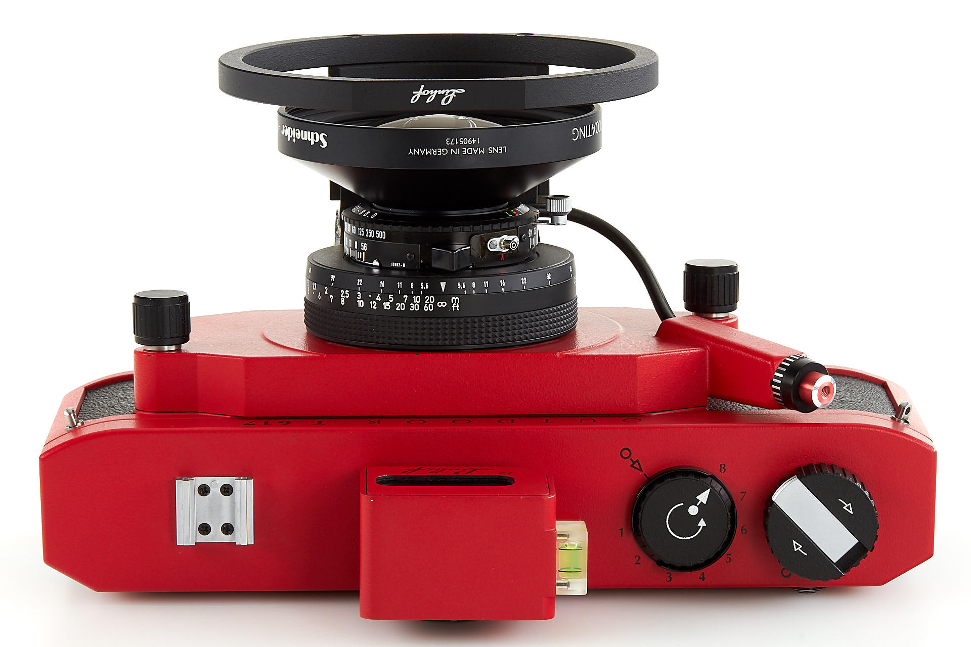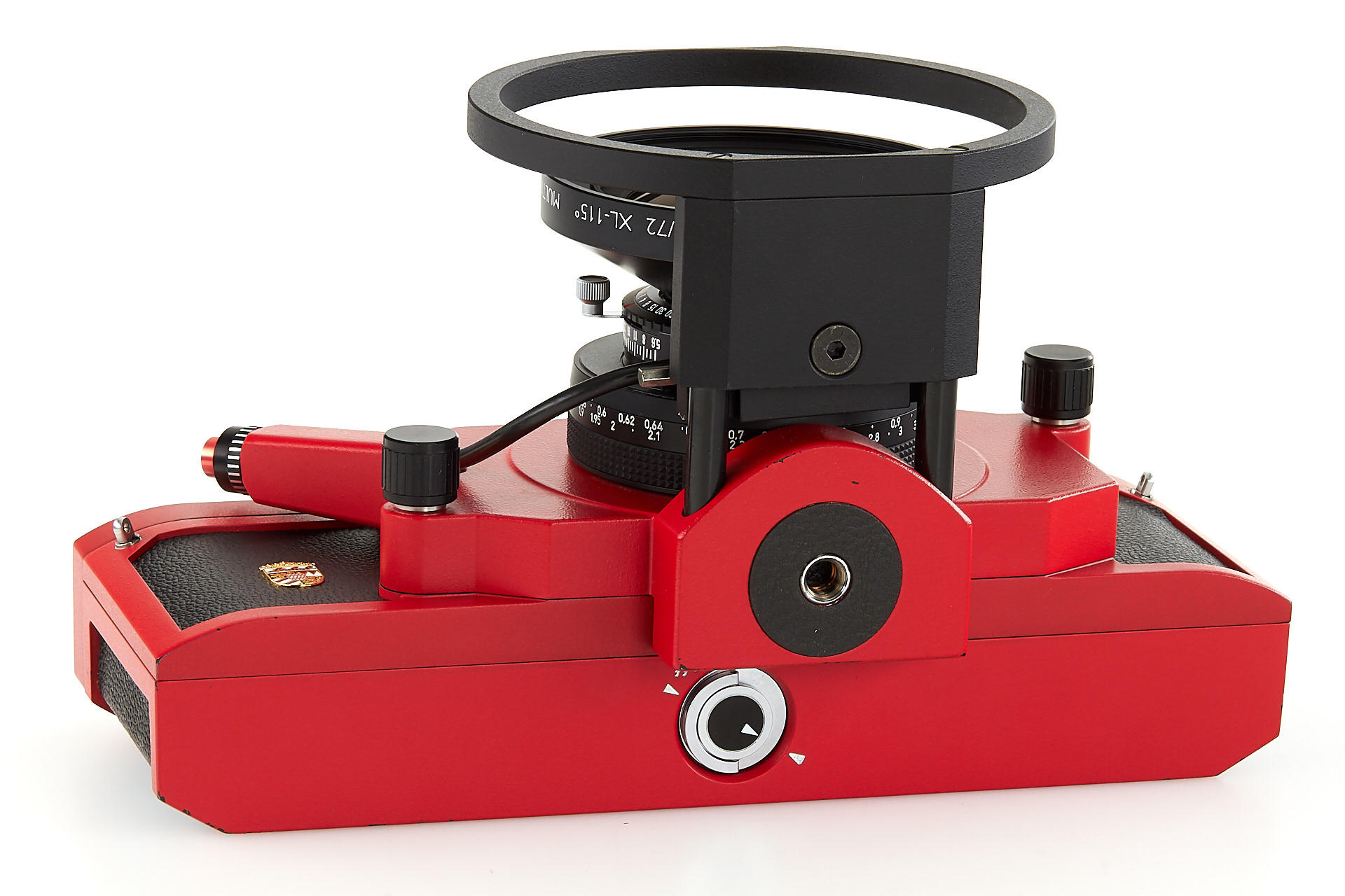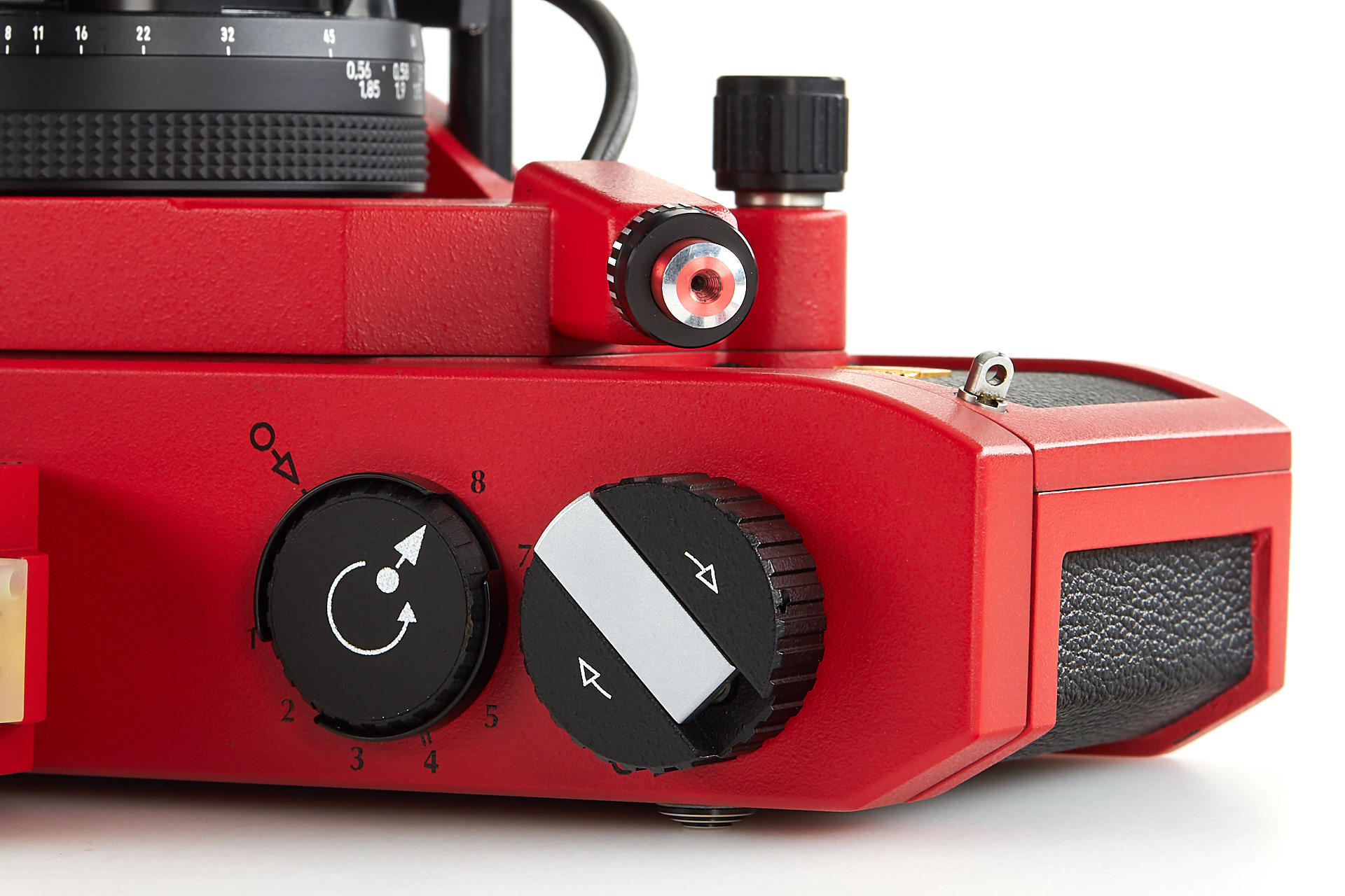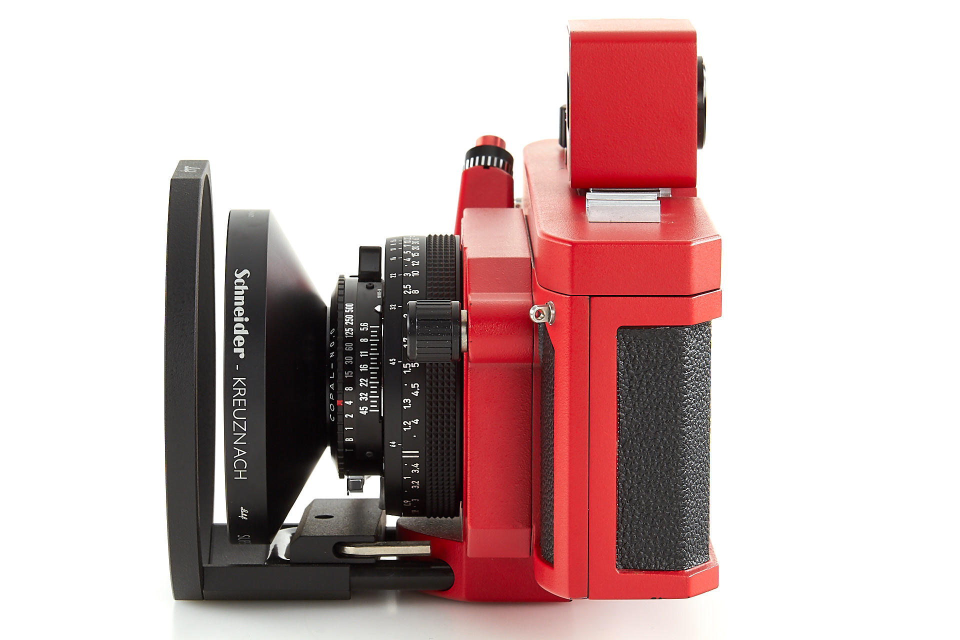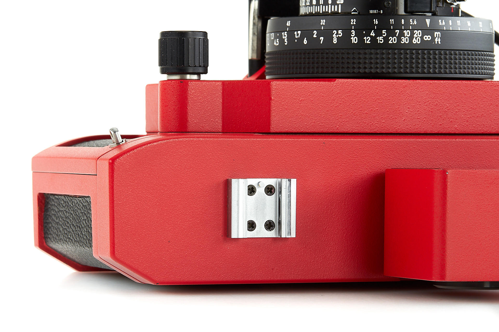 sought-after last version Technorama, here in extremely rare red 'Edition Fire', made to order only and in very limited numbers. The camera is in almost mint condition, comes with an original red finder, Super-Angulon 5.6/72mm XL-115° no.14905173, original centre filter, strap, instructions and warranty card, in an aluminium carrying case the total number of produced red Technoramas remains unknown, this is the first example we have ever seen!