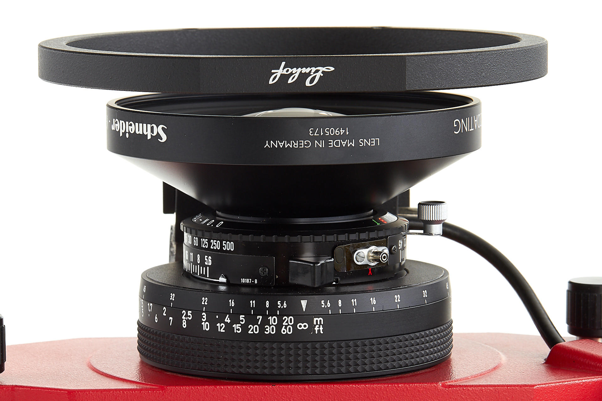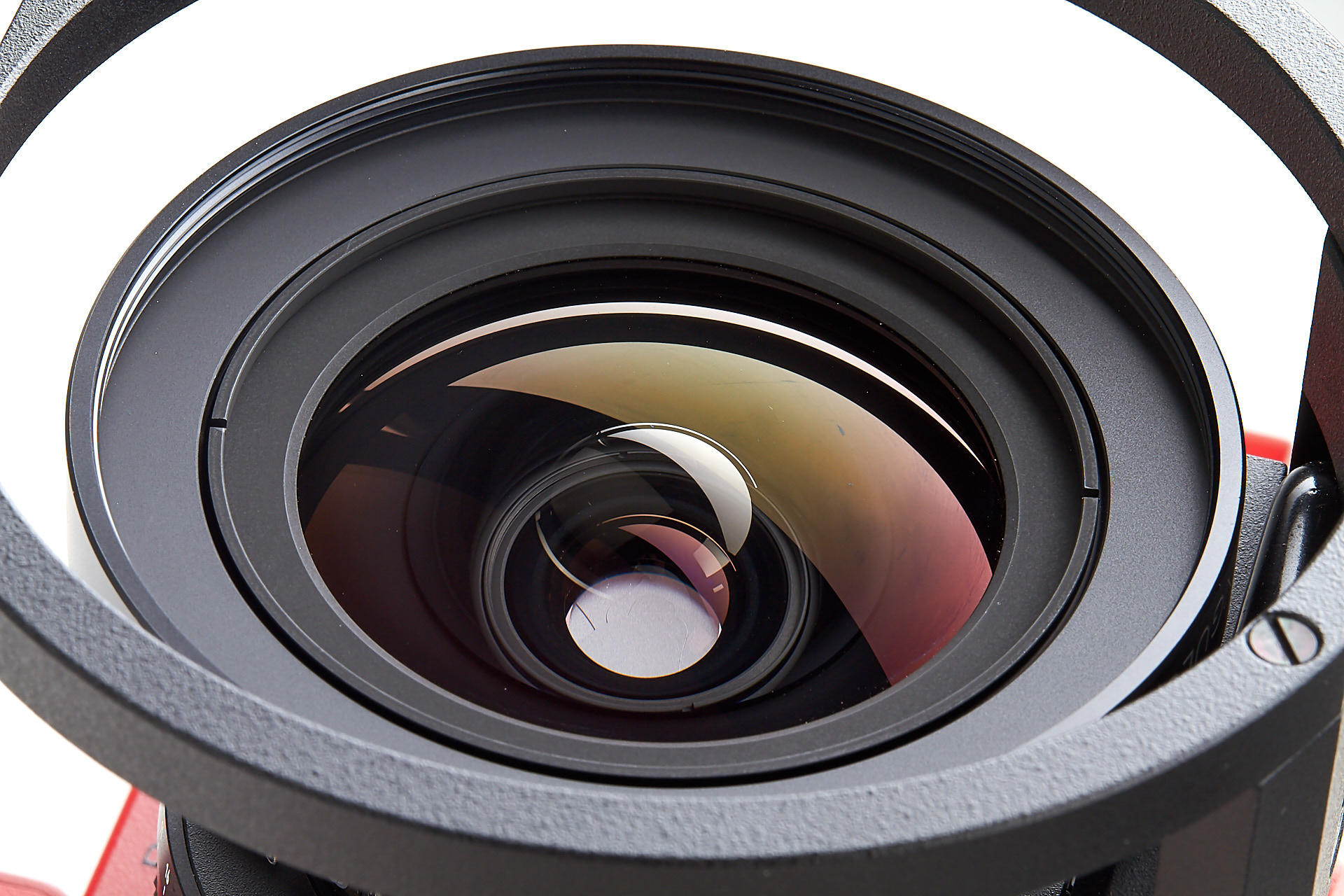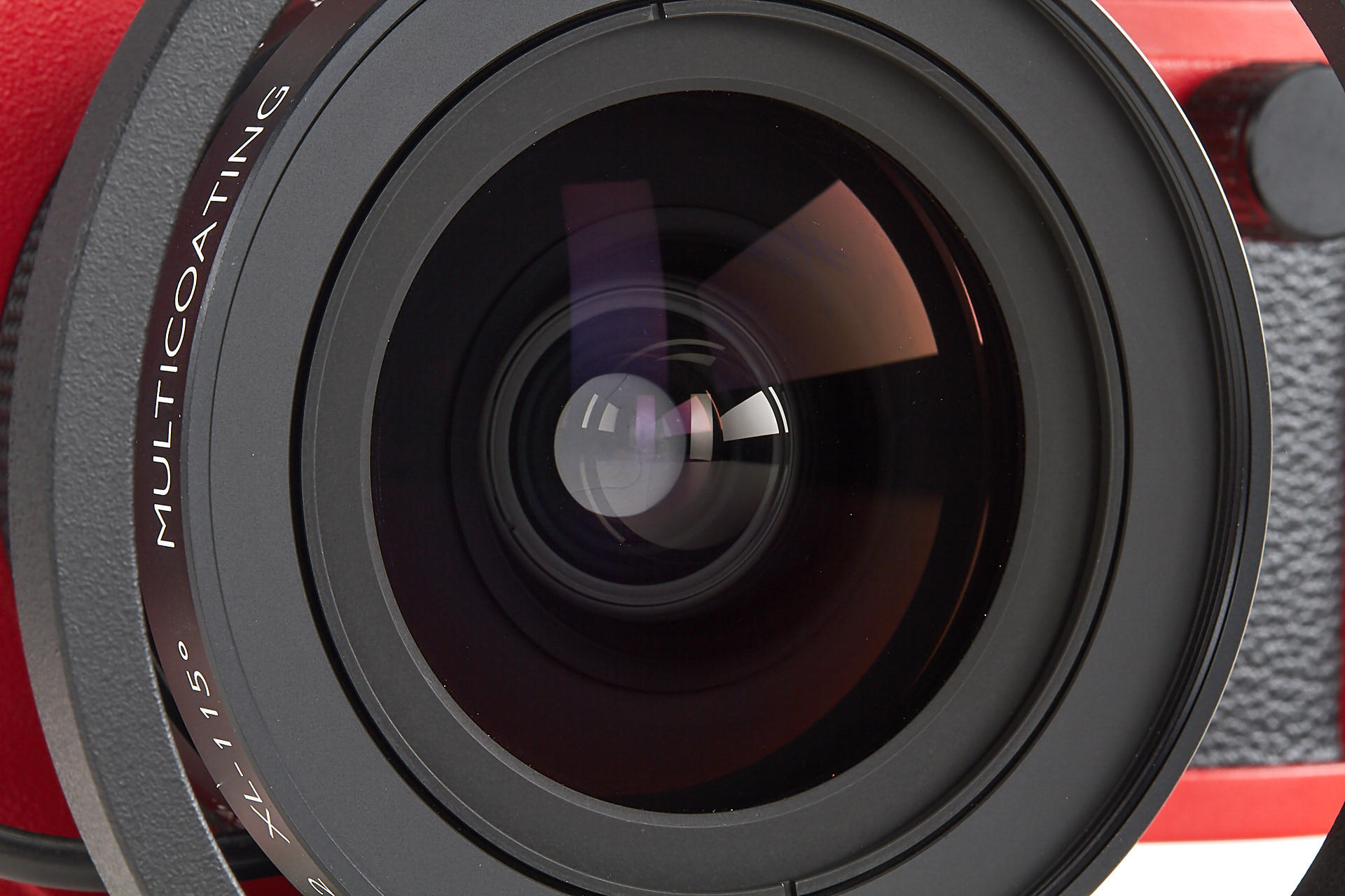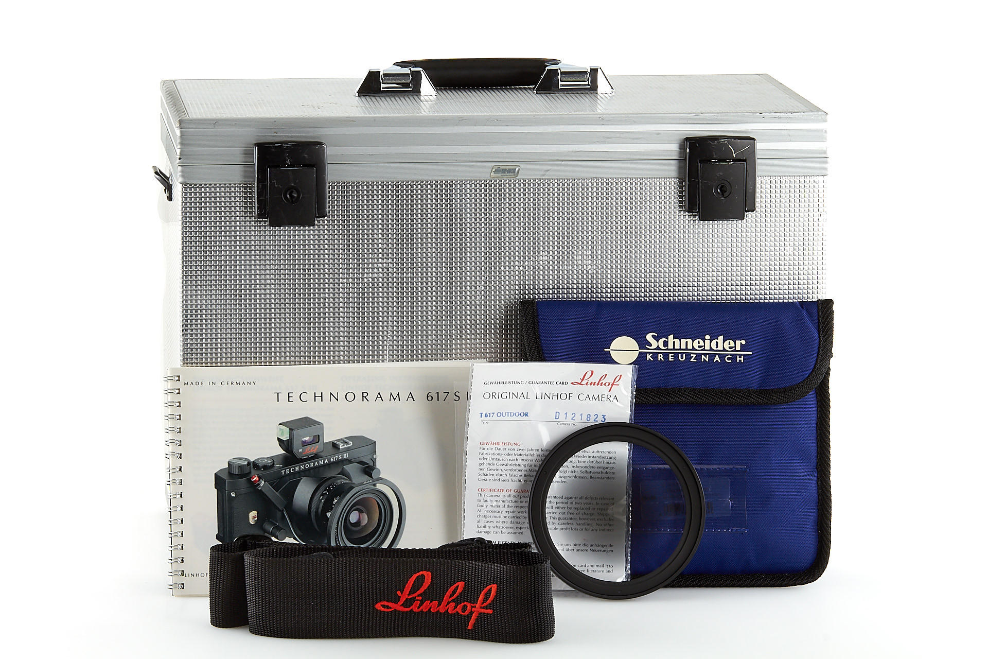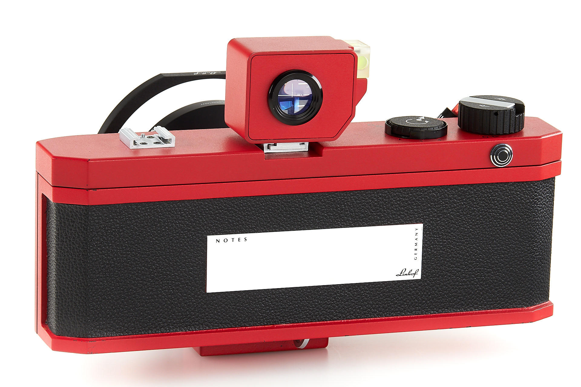 sought-after last version Technorama, here in extremely rare red 'Edition Fire', made to order only and in very limited numbers. The camera is in almost mint condition, comes with an original red finder, Super-Angulon 5.6/72mm XL-115° no.14905173, original centre filter, strap, instructions and warranty card, in an aluminium carrying case the total number of produced red Technoramas remains unknown, this is the first example we have ever seen!