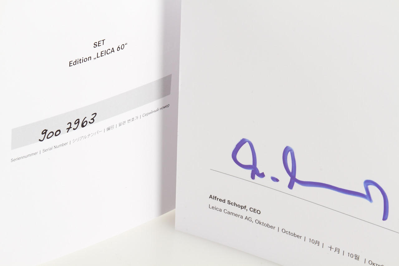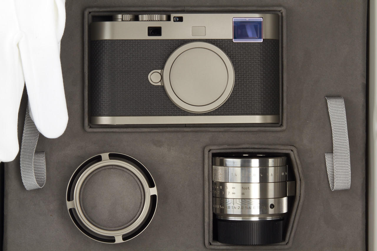 2014 Leica was celebrating the 60th anniversary of the birth of the legendary Leica rangefinder system with a strictly limited special edition – the Leica M Edition 60, the original set was strictly limited to 600 examples worldwide. This particular set is a pre-series Leica 60 no.P23/24 with a prototype Summilux-M 1.4/35mm no.23/24 in polished stainless steel finish. The outfit is complete with hood, strap, papers, certificate, presentation box.