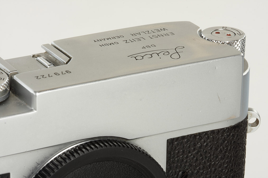 very rare M1 camera (pre-model or prototype of the later MD) without M1 engraving, no viewfinder, Leitz records indicate "Sonderausführung" (special fitting), see: Lager I p.216, in perfect working order