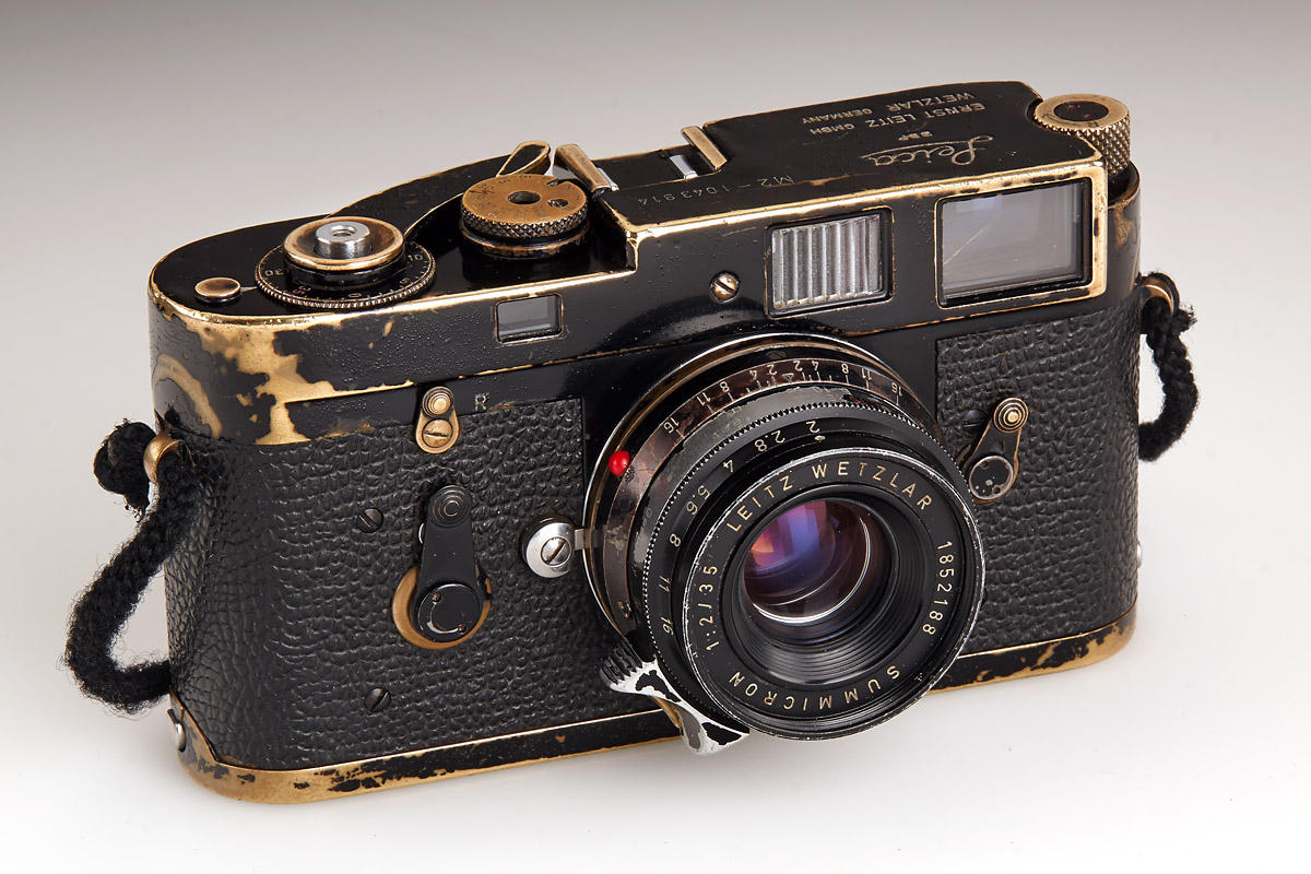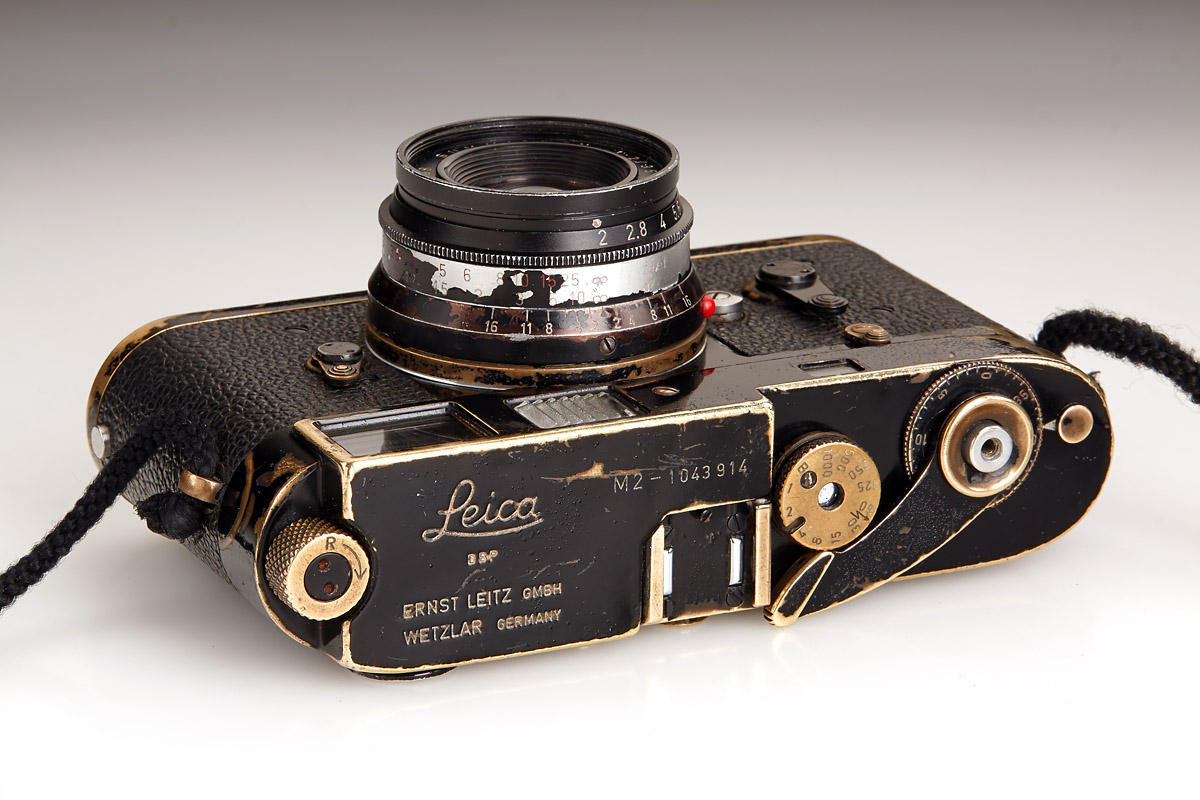 Original black painted M2 owned by famous Magnum photographer Bruno Barbey with matching and rare black 8-element Summicron 2/35 mm no. 1852188, strap. The camera comes with the certificate of ownership and his famous books: 'Les Italiens' and 'Maroc'. LITERATURE Paul-Henry van Hasbroeck (ed.), Leica, a history illustrating every model and accessory, p. 154-156. Born in Morocco, Bruno Barbey studied photography and graphic arts at the Ecole des Arts et Métiers in Vevey, Switzerland (1959-60). From 1961 to 1964 he photographed the Italians as protagonists of a small “theatrical world”, with the aim of capturing photographically the spirit of a nation. During that decade he was commissioned by Editions Rencontre in Lausanne to document European and African countries and was also a regular contributor to Vogue magazine. In 1964 Barbey began his relationship with Magnum Photos, and became an Associate member in 1966, and a full member in 1968, a year when he documented the political unrest and the French student riots in Paris. He eventually served as Magnum vice president for Europe in 1978 and 1979 and from 1992-1995 as President of Magnum International. Over four decades, Bruno Barbey has journeyed across five continents and numerous world conflicts, though he does not consider himself a war photographer, he nevertheless covered the civil war in Nigeria, Vietnam, the Middle East, Bangladesh, Cambodia, Ireland, Iraq and Kuwait. His work has appeared in most major magazines in the world. A prolific author who often exposes and expresses himself in book form, Barbey is especially known for his free and harmonious use of colour and has frequently worked in Morocco, the country of his childhood. He has been exhibited internationally and his photographs are in the collection of numerous museums. Bruno Barbey wurde in Marokko geboren und studierte Fotografie und Grafik an der Ecole des Arts et Métiers in Vevey in der Schweiz (1959-60). Von 1961 bis 1964 fotografierte er die Italiener als Protagonisten einer kleinen „theatralischen Welt“, um den Geist einer Nation fotografisch einzufangen. Während dieses Jahrzehnts bekam er von Editions Rencontre in Lausanne den Auftrag, europäische und afrikanische Länder zu dokumentieren; ferner druckte Vogue regelmäßig seine Bilder ab. 1964 kam er zum ersten Mal in Kontakt mit Magnum; 1966 wurde er ein assoziiertes Mitgleid und 1968 Vollmitglied. Im selben Jahr dokumentierte er die politischen Unruhen und die französische Studentenrevolte in Paris. Schließlich wurde er Vizepräsident von Magnum Europa (1978/79) und von 1992 bis 1995 Präsident von Magnum International. Über vier Jahrhunderte hat Bruno Barbey fünf Kontinente und zahlreiche Krisen bereist. Obwohl er sich nicht als Kriegsfotograf versteht, hat er die Auseinandersetzungen in Nigeria, Vietnam, dem Nahen Osten, Bangladesch, Kambodscha, Irland, Irak und Kuwait dokumentiert. Seine Werke sind von fast allen wichtigen Zeitschriften der Welt abgedruckt worden. Als überaus produktiver Bildautor, der häufig Bücher herausbringt, ist Barbey besonders bekannt für seine freimütige und harmonische Verwendung von Farben. Er arbeitet häufig in Marokko, wo er aufwuchs. Seine Fotografien sind international ausgestellt worden und befinden sich in den Sammlungen namhafter Museen.