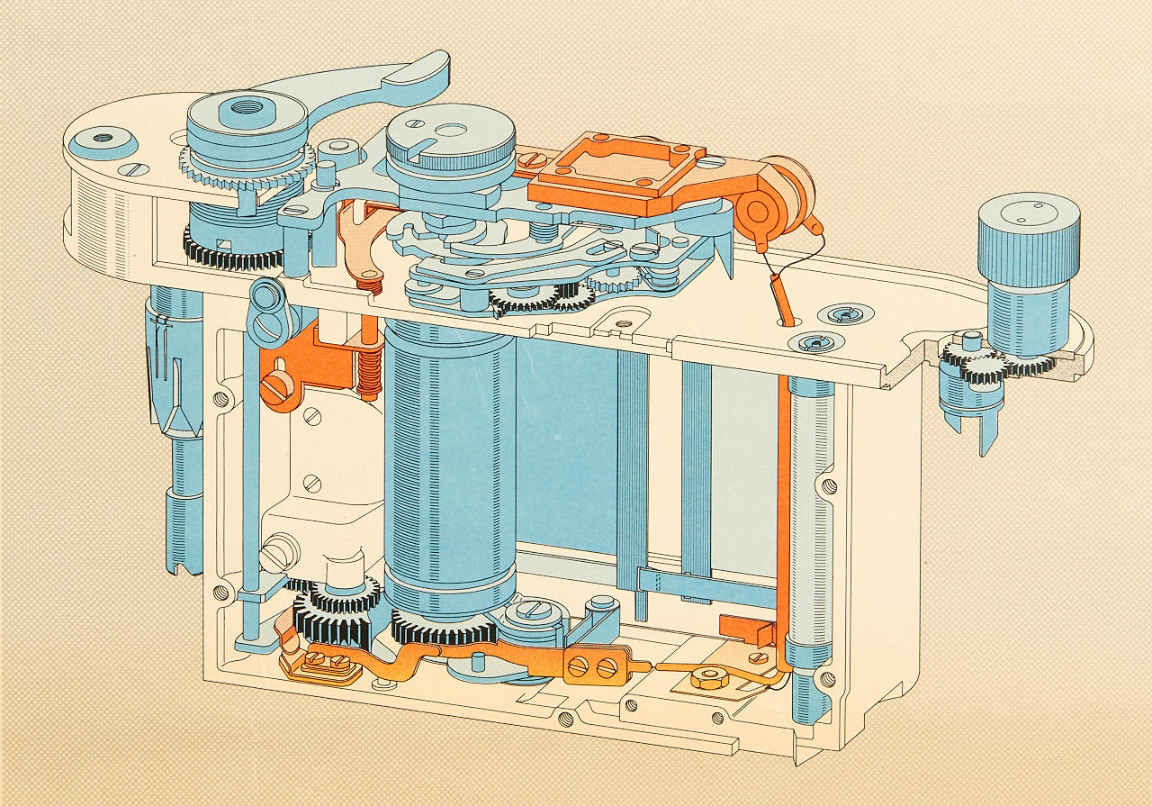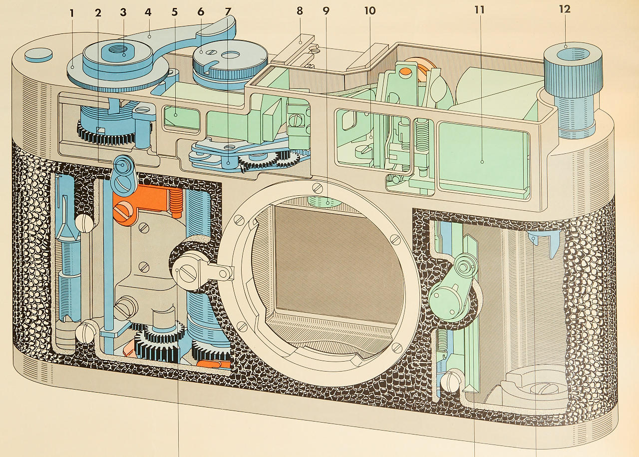 original Leitz poster (size 82x120cm) in very good original condition showing a cut-away Leica M2 and demonstrating all its functions, the illustrated camera differs in some details to production models