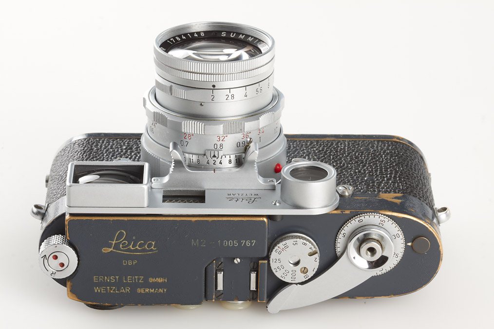 in 1960 twenty M2 grey painted cameras were delivered to the US Air Force in Germany, the offered camera no.1105767 is in 100% original and working condition, with nice patina, only approx.10 cameras are believed to exist, first time to be sold in public auction, with matching Close-focus Summicron 2/50mm no.1784148 (cond.B)