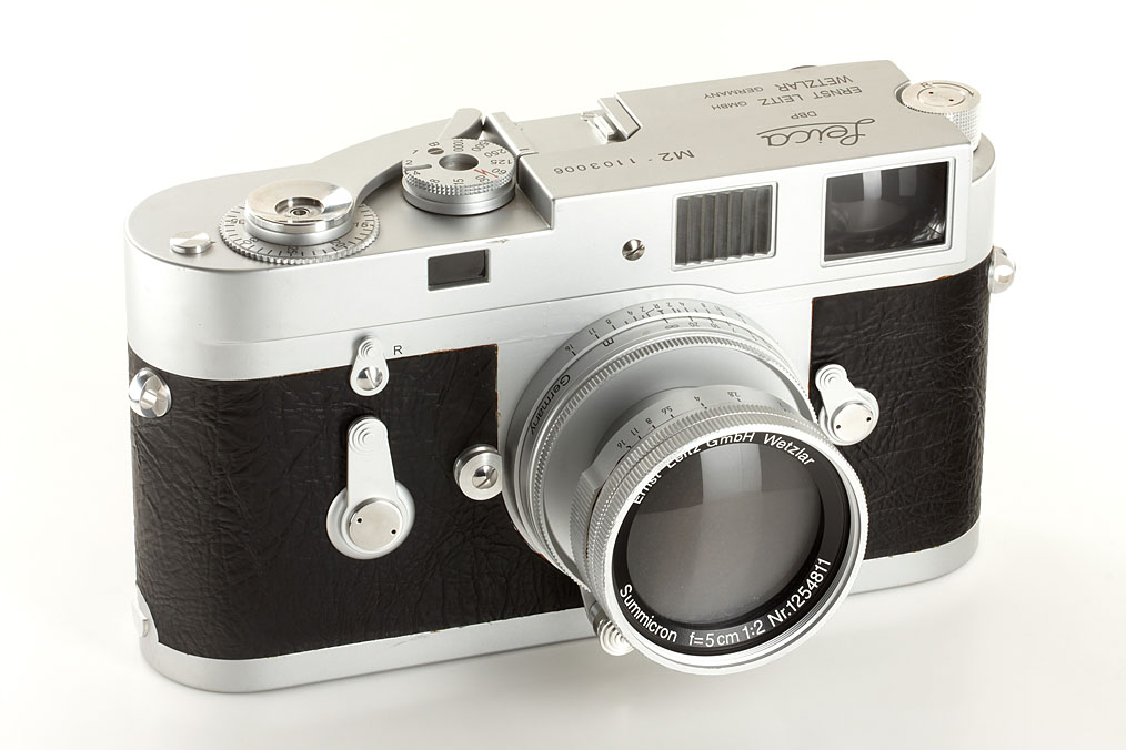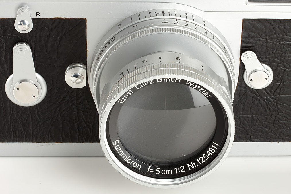 rare original Leitz oversize wooden display model of Leica M2 (height 31cm, length 57cm) with collapsible Summicron 2/5cm no.1254811, attractive display model