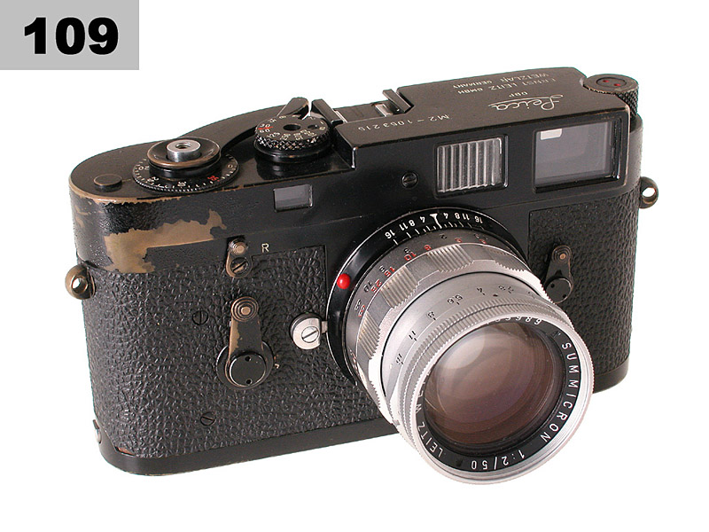 camera from official black paint batch, good original condition - never restored, with typical bubbling of the paint, interesting and rare rigid Summicron 2/50, no. 2159989 with black paint part