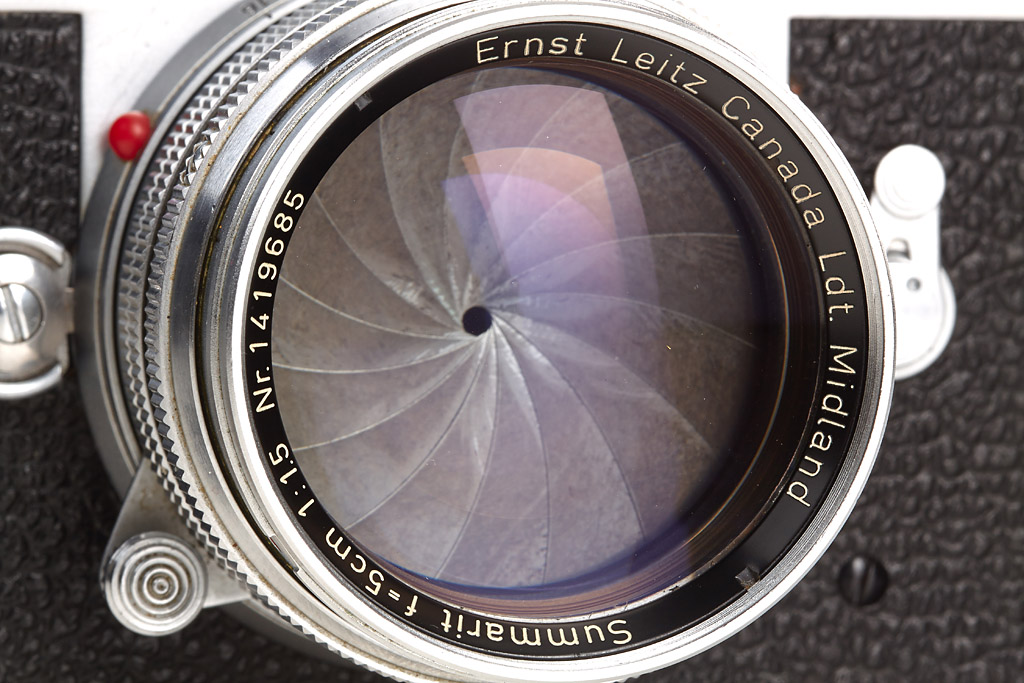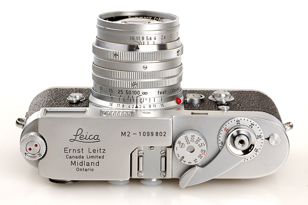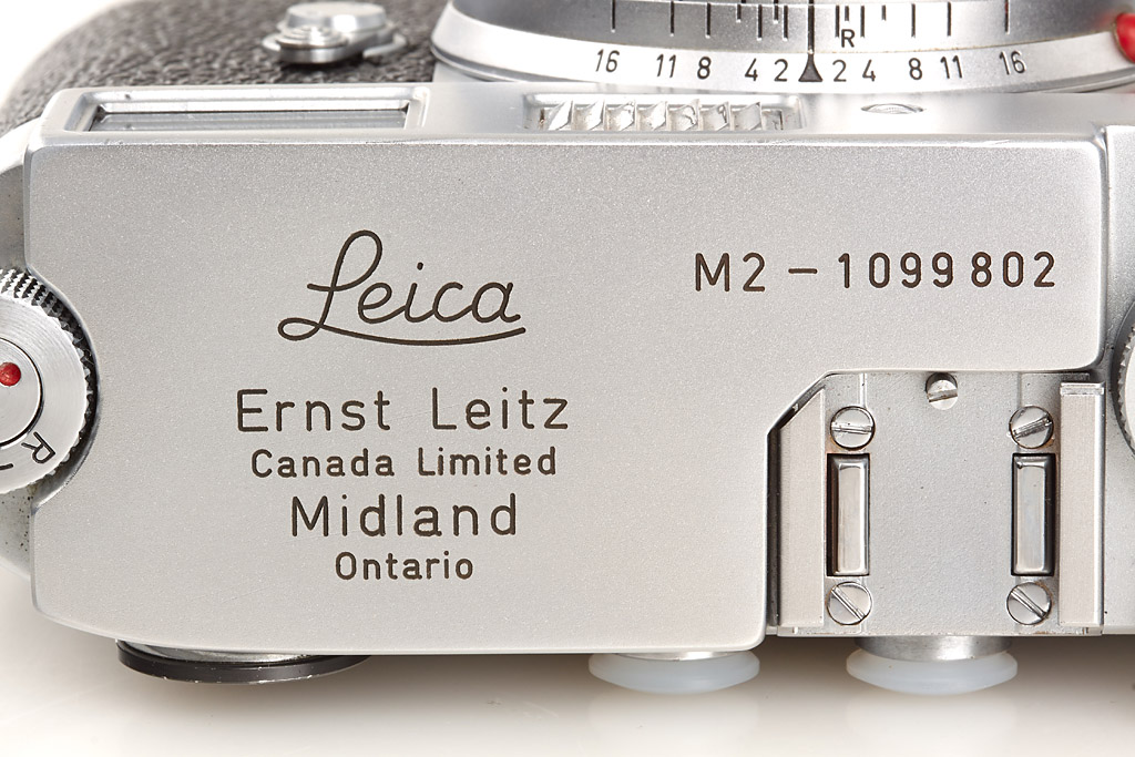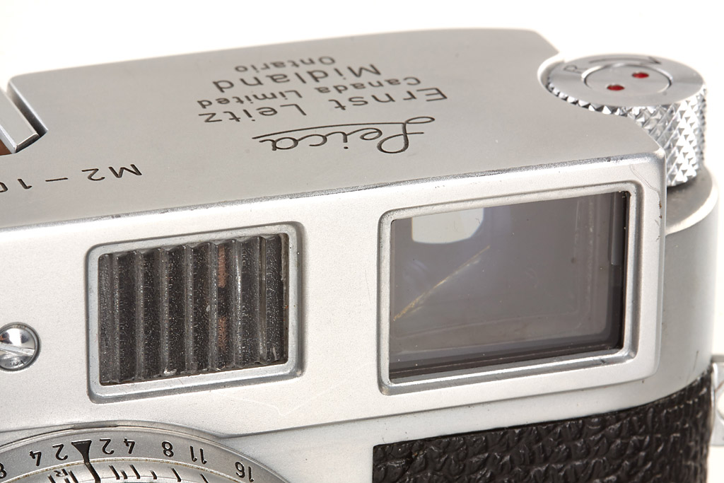 very rare, fully original and near mint body in perfect technical order, engraved 'Ernst Leitz Canada Limited Midland Ontario' with matching Midland Summarit 1.5/5cm no.1419685 - this is the second camera produced in a batch of 100 Midland M2's (nos.1099801-1099900)