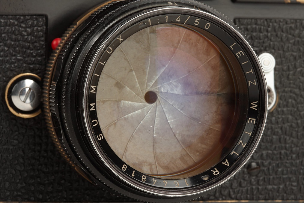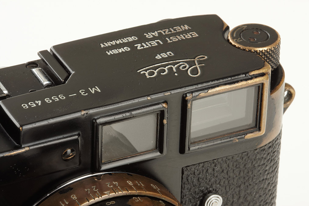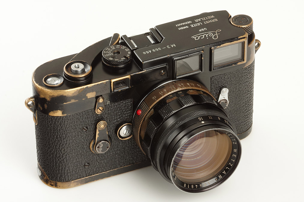 very early fully original body from the first official production batch (959401-959500) in perfect working order with matching black paint Summilux 1.4/50mm no.1644818 (black lens mount, XOOIM hood) and very early matching black M3 Summicron 2/35mm no.1631911 (lens lock release removed), everready case and leather keeper