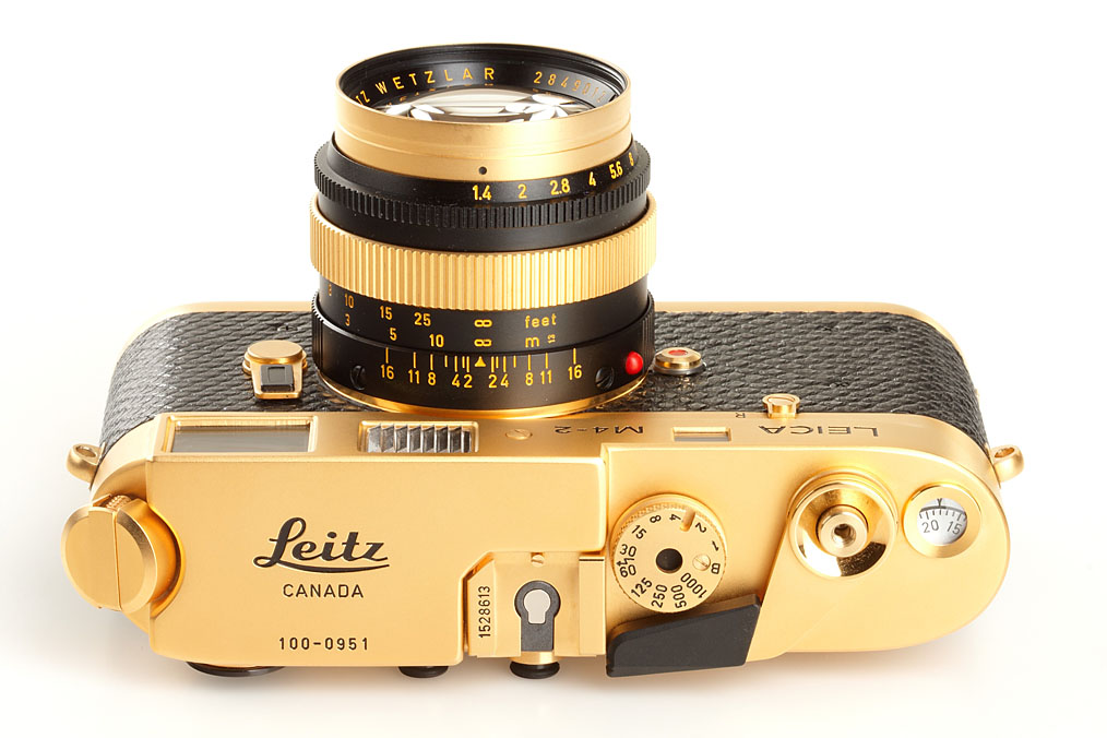 special gold edition Oskar Barnack 1879-1979, (special number 100-0951, gold plated Summilux-M 1.4/50mm no.2849012, new with wooden presentation box, all accessories, papers, maker's box