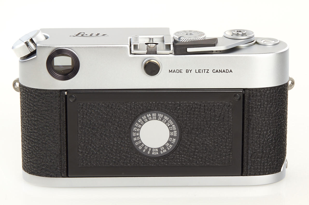 old new stock of the rare M4-P in chrome finish without '70 Years' engravings from the last batch of cameras produced in Canada, strap