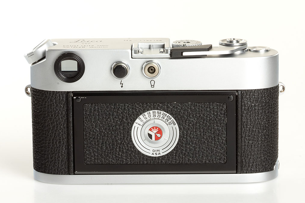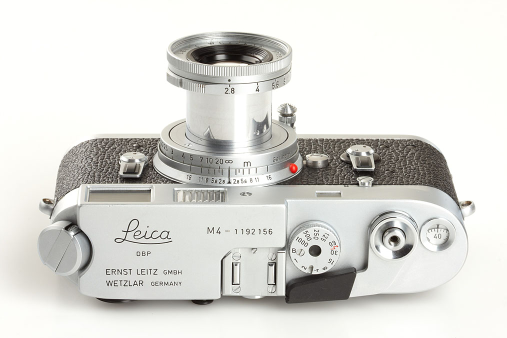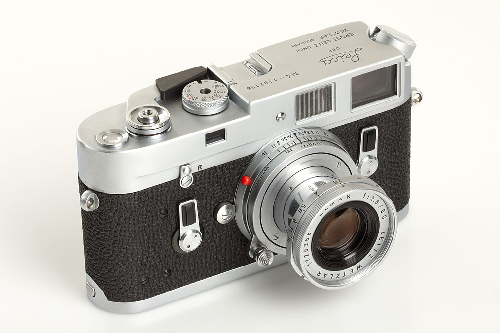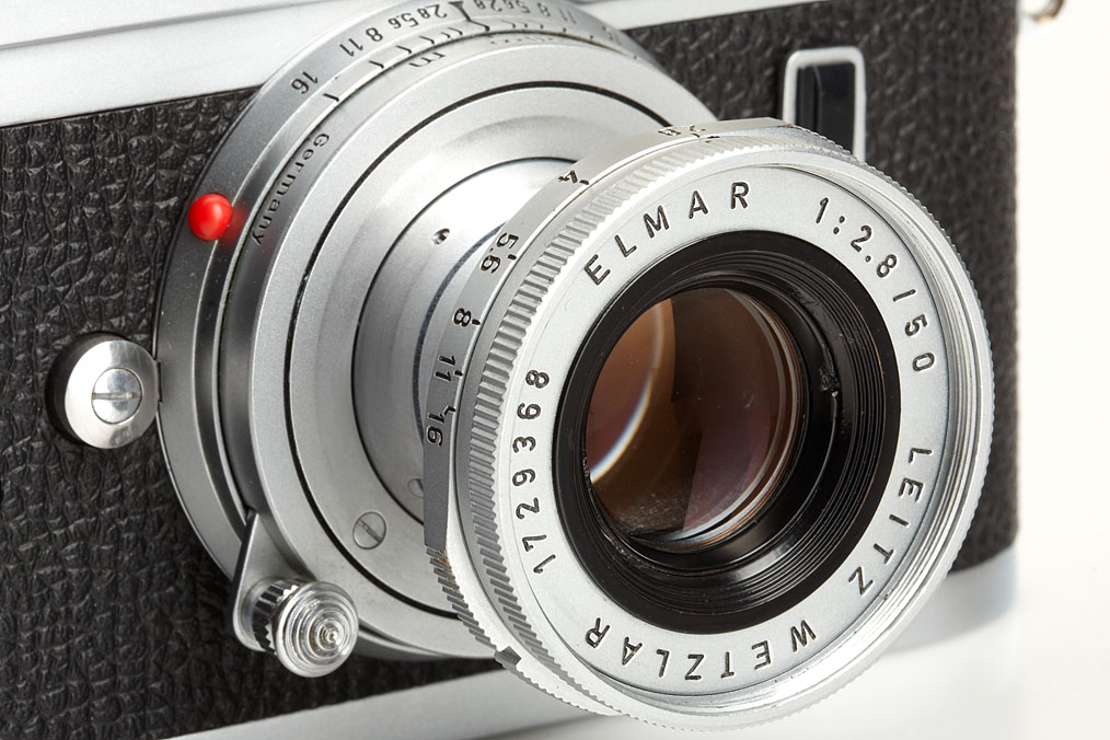 body in good working order with matching Elmar 2.8/50mm no.1729368 (meter scale), ITOOY hood with cap, Elmarit 2.8/135mm no.2152139 (caps, UVa filter with filter-ring 14161R), black Leicameter MR-4 no.52332, original strap TSOOV