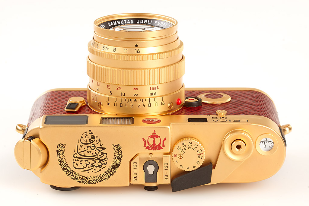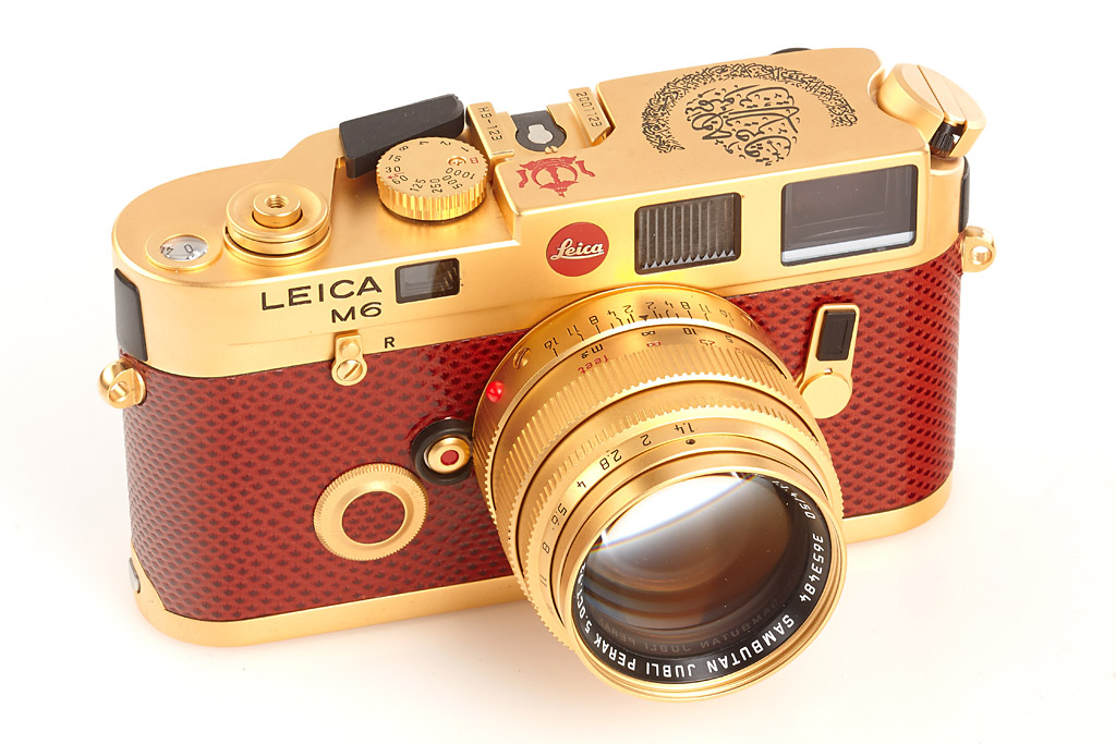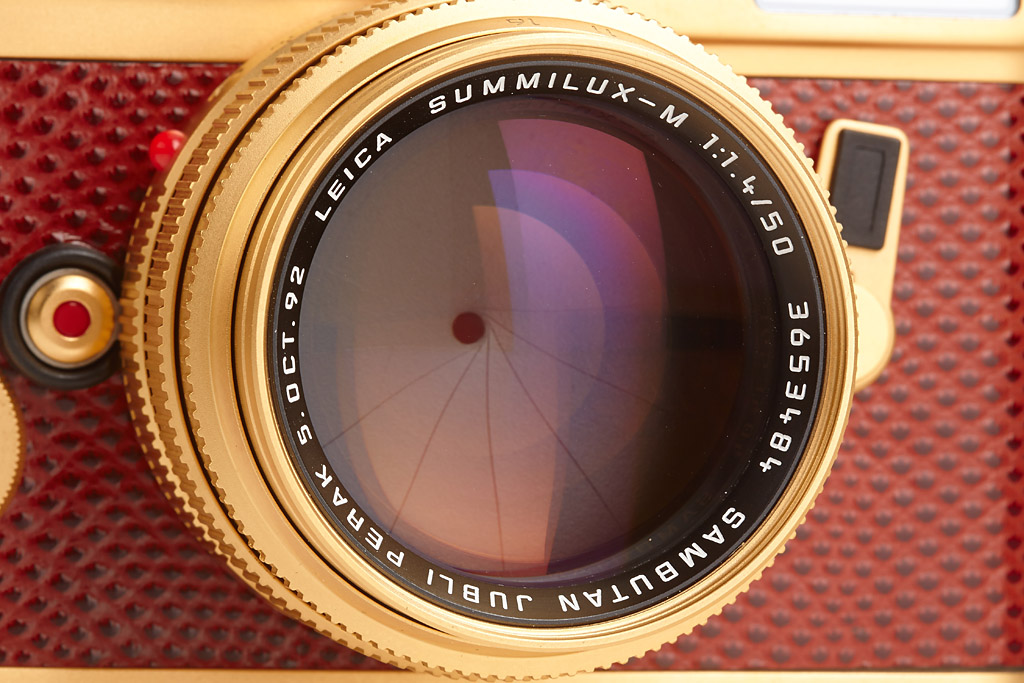 rare gold edition M6 (special no.HB-123) with matching Summilux-M 1.4/50mm no.3653484, wooden box, accessories, instructions, warranty card, maker's box (top missing)