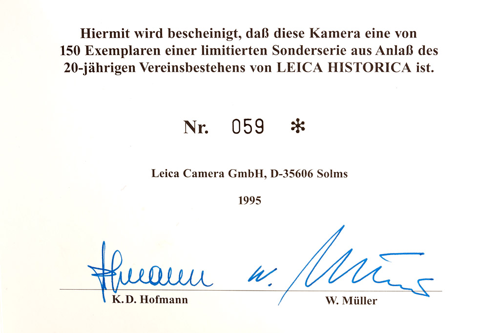 edition no.059-150 for Leica Historica Germany for their 20th anniversary, only 150 sets were produced, complete in maker's box