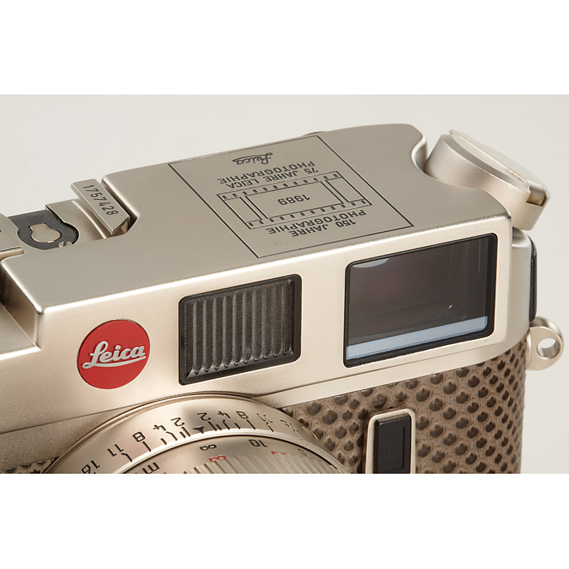 edition for '150 Years of Photography and 75 Years of Leica photography' (special number I028), platinum Summilux-M 1.4/50mm no.3481977, almost new with caps, hood, strap, wooden presentation box and maker's box