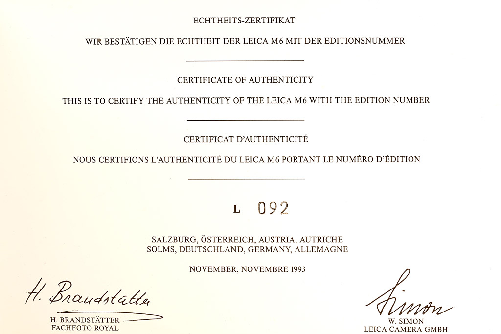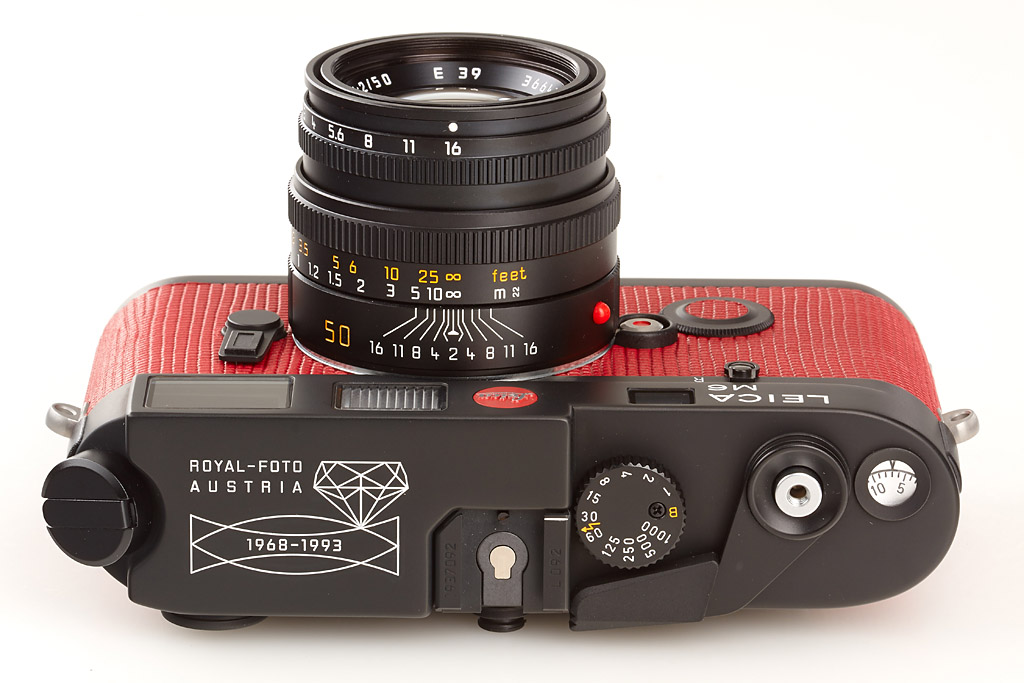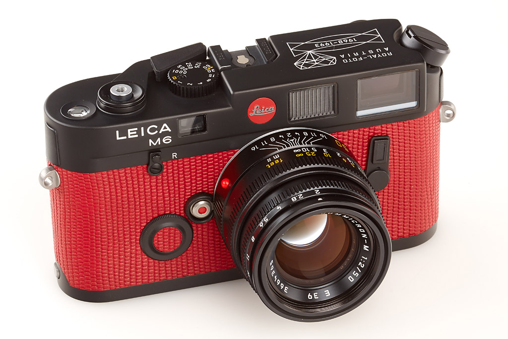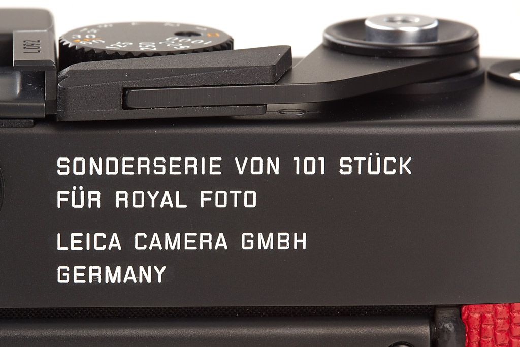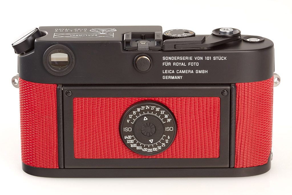 black limited edition with red leather covering, a total of only 101 cameras (black and chrome) were produced, special no. L 092, new and complete with all papers in maker's box, including black Summicron-M 2/50mm 11826 no.3664365, complete in maker's box