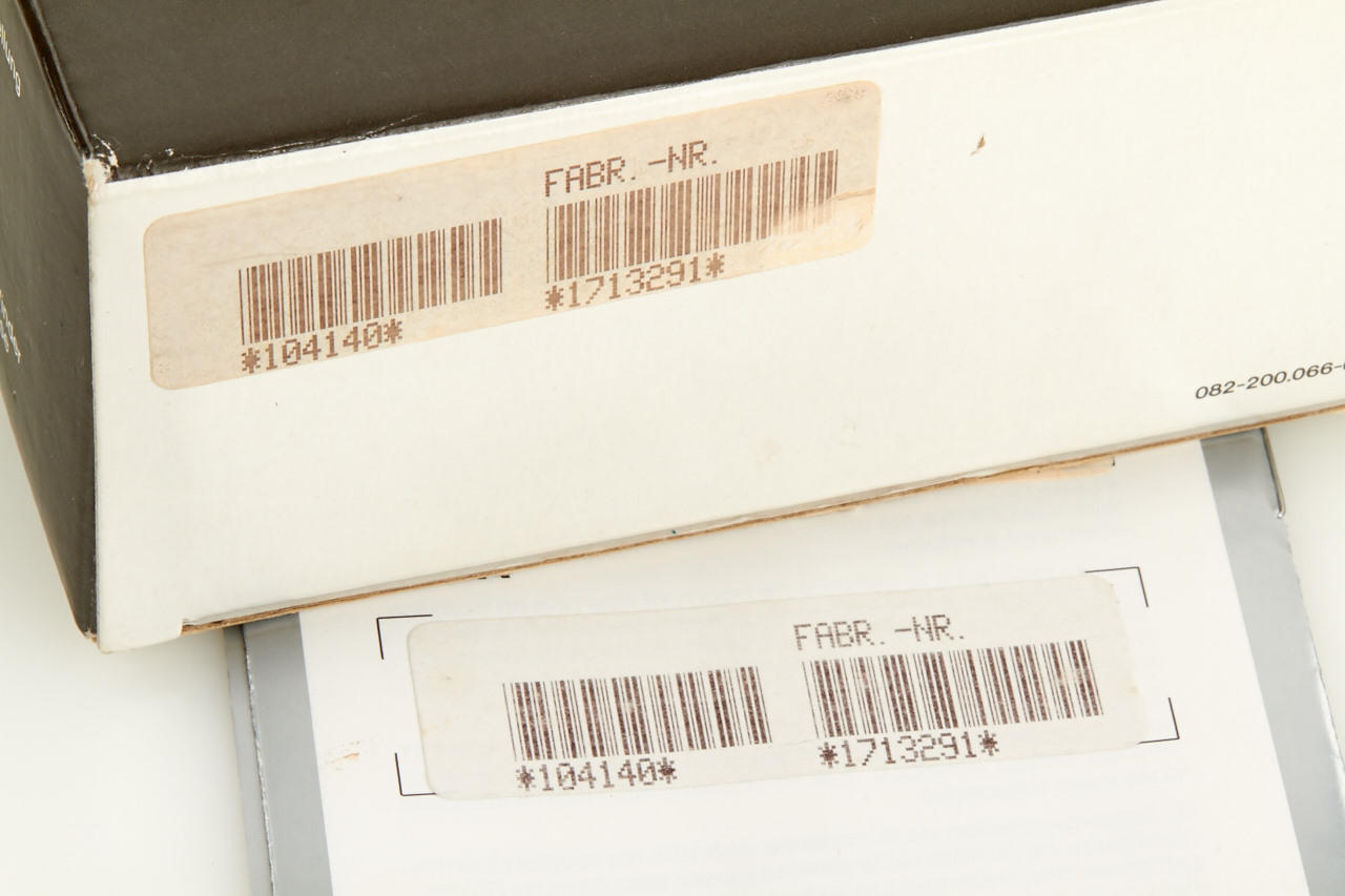 in near mint condition, with body cap, strap, plastic case and maker's box with matching serial number