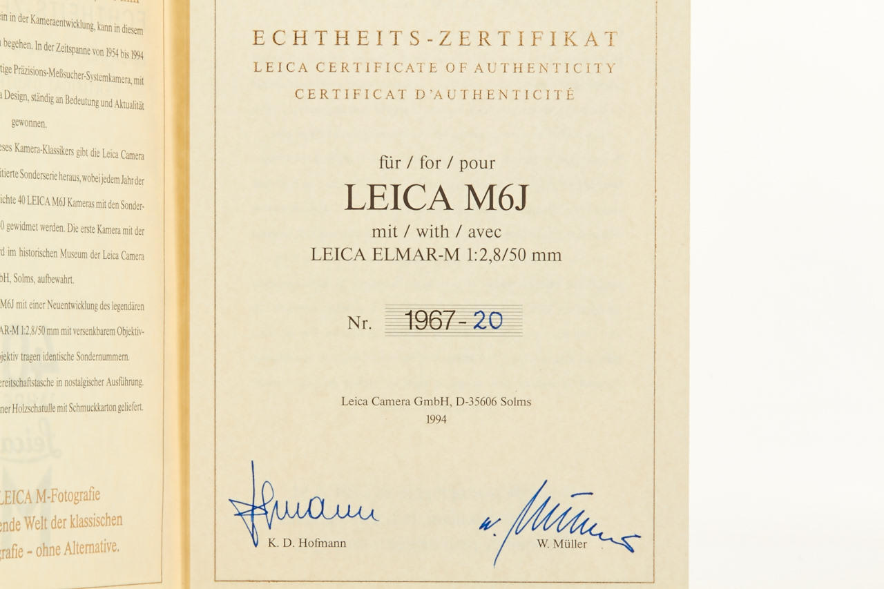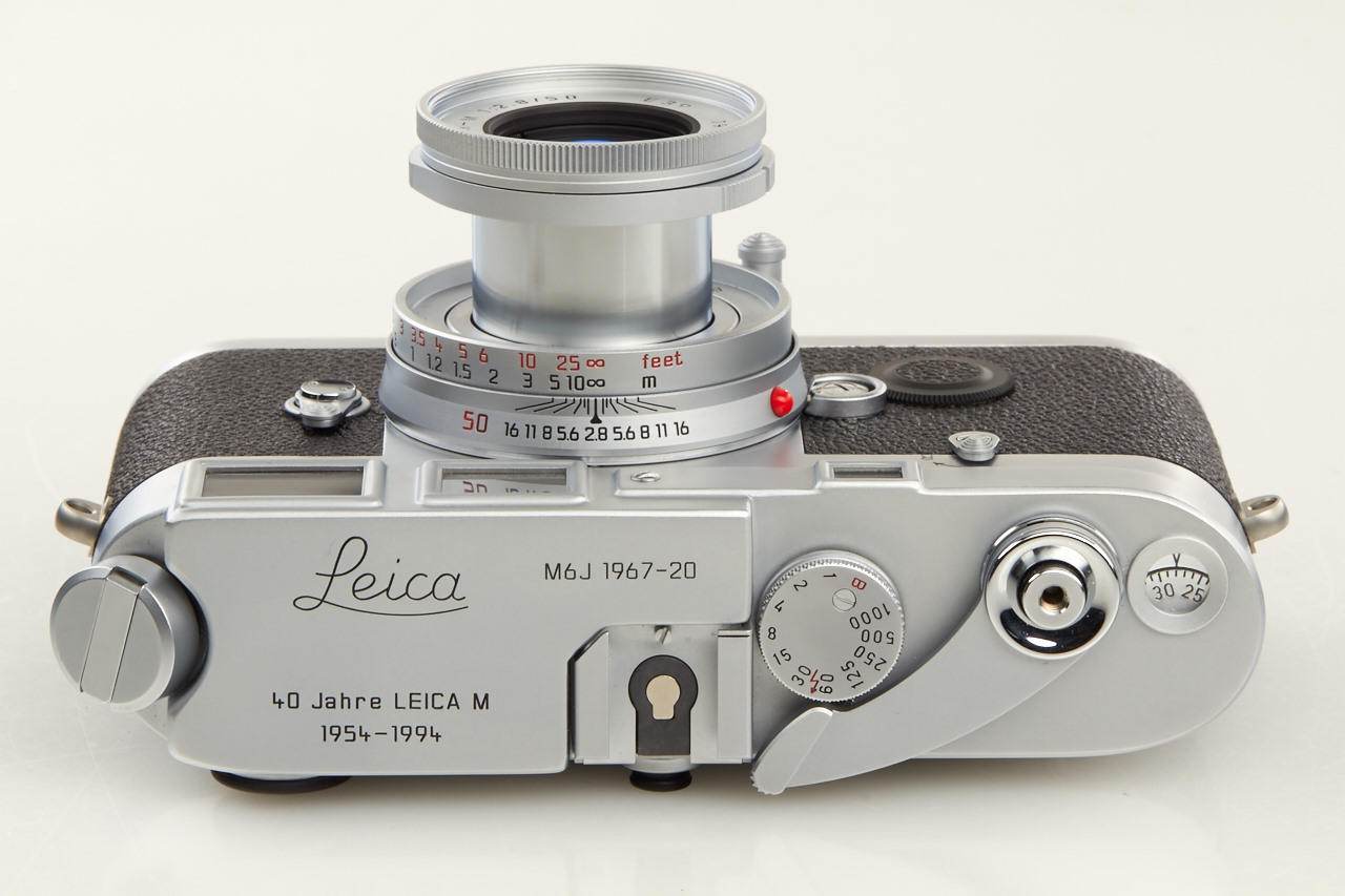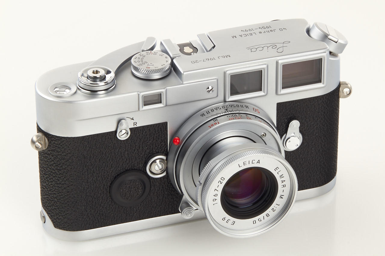 special edition of 1640 cameras made to celebrate 40th anniversary of Leica M (40 pieces for each production year), the camera combines features of the M3 and M6, complete set (special number 1967-20) with matching Elmar 2.8/50mm no.1967-20, brand new with case, certificate, wooden presentation box, worn maker's boxes