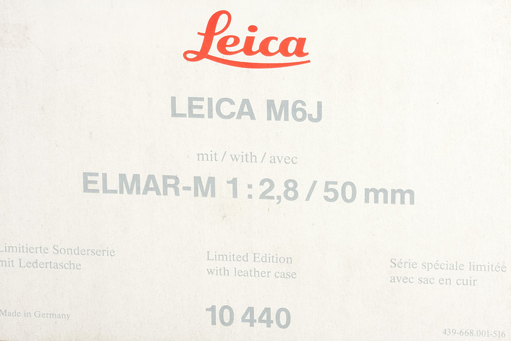 still sealed maker's box, M6J (special number not known) with matching Elmar 2.8/50mm and all accessories