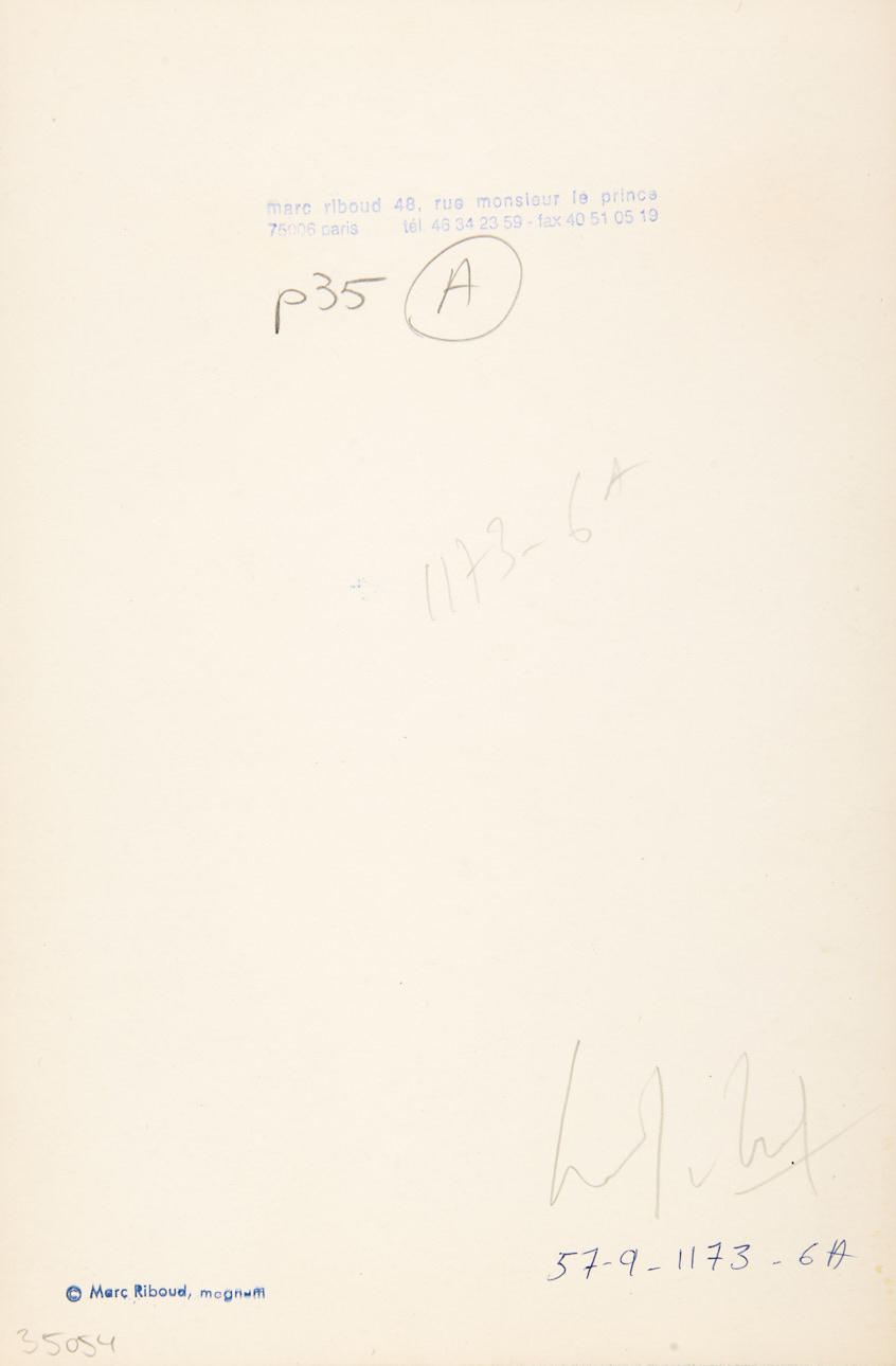 Vintage silver print 25,4 x 16,8 cm Signed by the photographer in pencil on the reverse, his studio stamp and various handwritten notations in pencil and ink on the reverse LITERATURE Marc Riboud. Into the Orient. Éditions Xavier Barral 2012, p. 38.