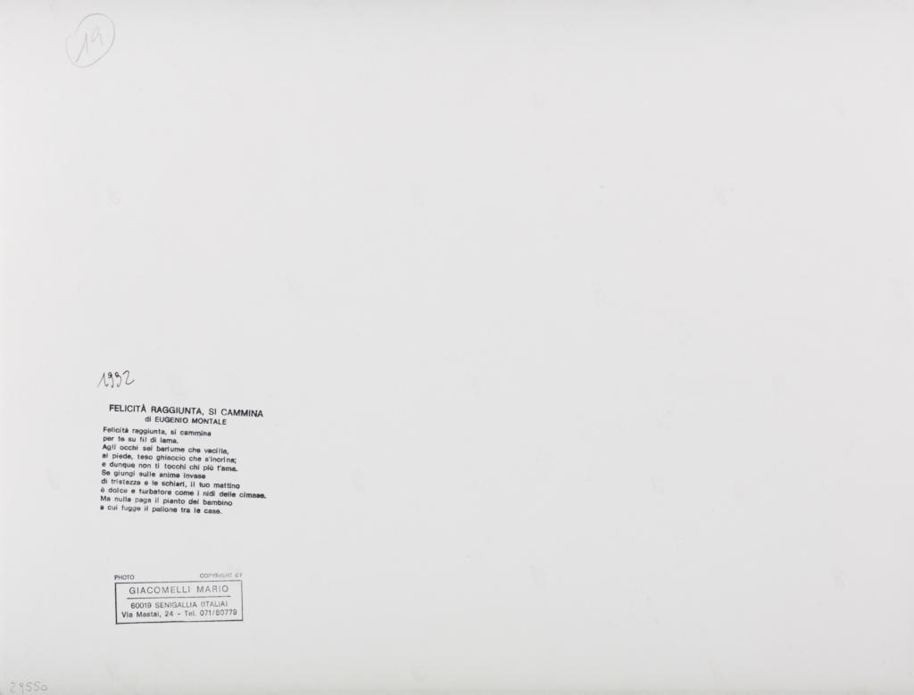 MARIO GIACOMELLI (1925–2000) ‘Felicità raggiunta, si cammina di Eugenio Montale’, 1992