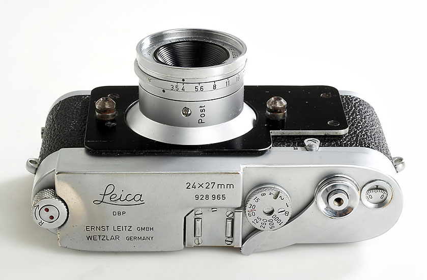 rare camera for the German Post office, very early serial number (from the first batch of 78 post-cameras, 928923-929000), Post-Summaron 3.5/3.5cm no.1614554, just engraved: Post