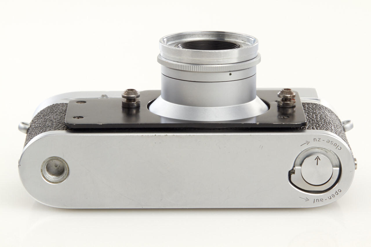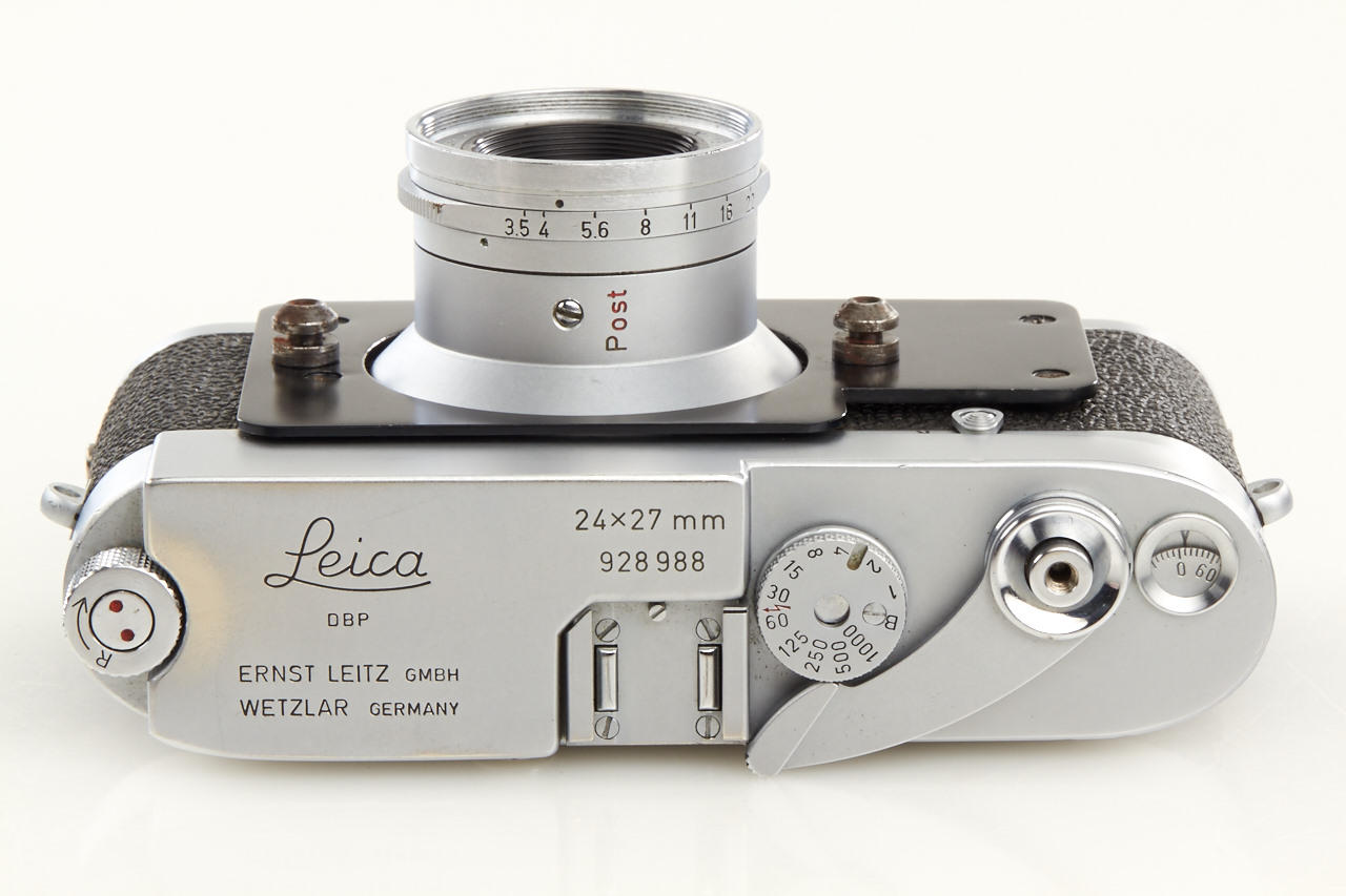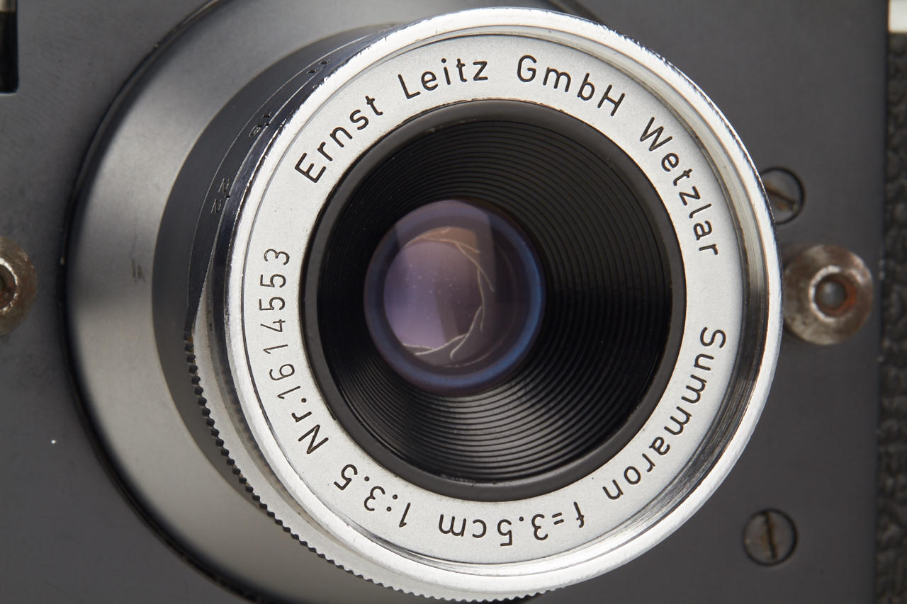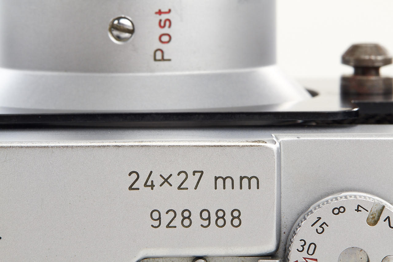 specially modified Post camera for 24x27mm exposures, counter to 60, shutter fixed at flash sync speed, with fix focus Summaron 3.5/3.5cm no.1614553