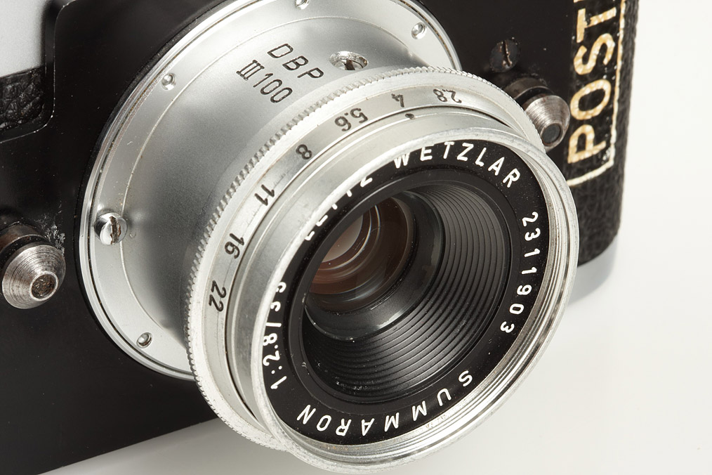German Post Leica, marked on leather and base plate, with fix-focus Summaron 2.8/35mm no.2311903 (DBP III 100 engraved on barrel), flash lock
