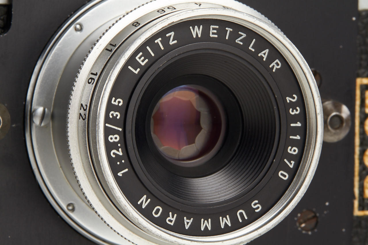 Post camera in very good original condition, build-in mask for 24x27mm exposures, counter to 60, shutter permanently locked at flash-sync speed, with fix-focus Summaron 2.8/35mm no.2311970