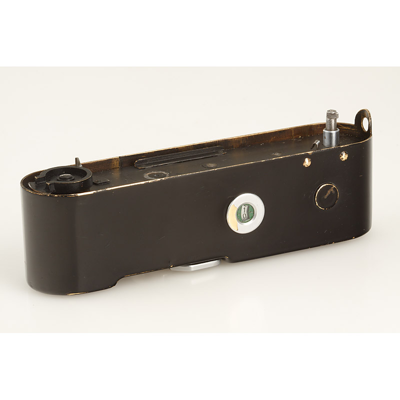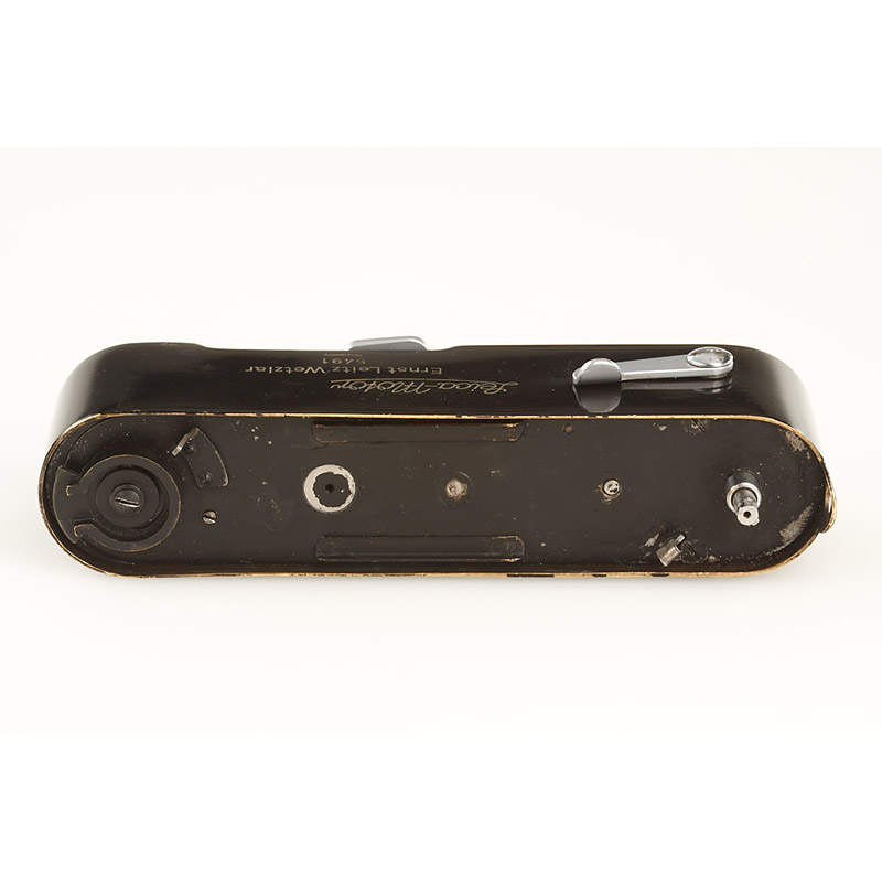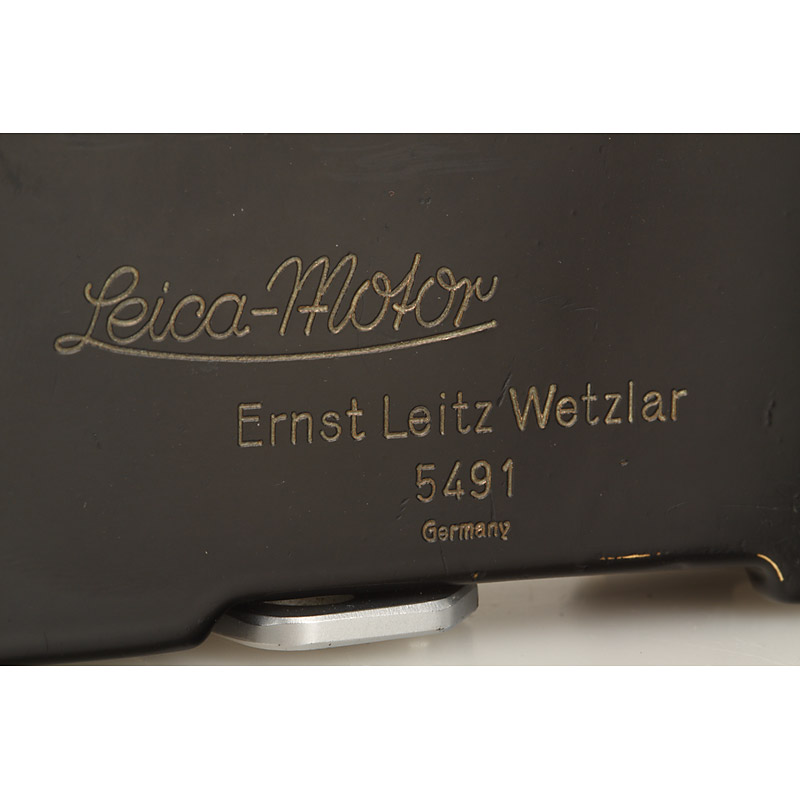 war-time spring motor drive Mooly-C in black paint with internal coupling for Leica models IIIc and IIId, in perfect working order and original condition, engraved 'Germany'