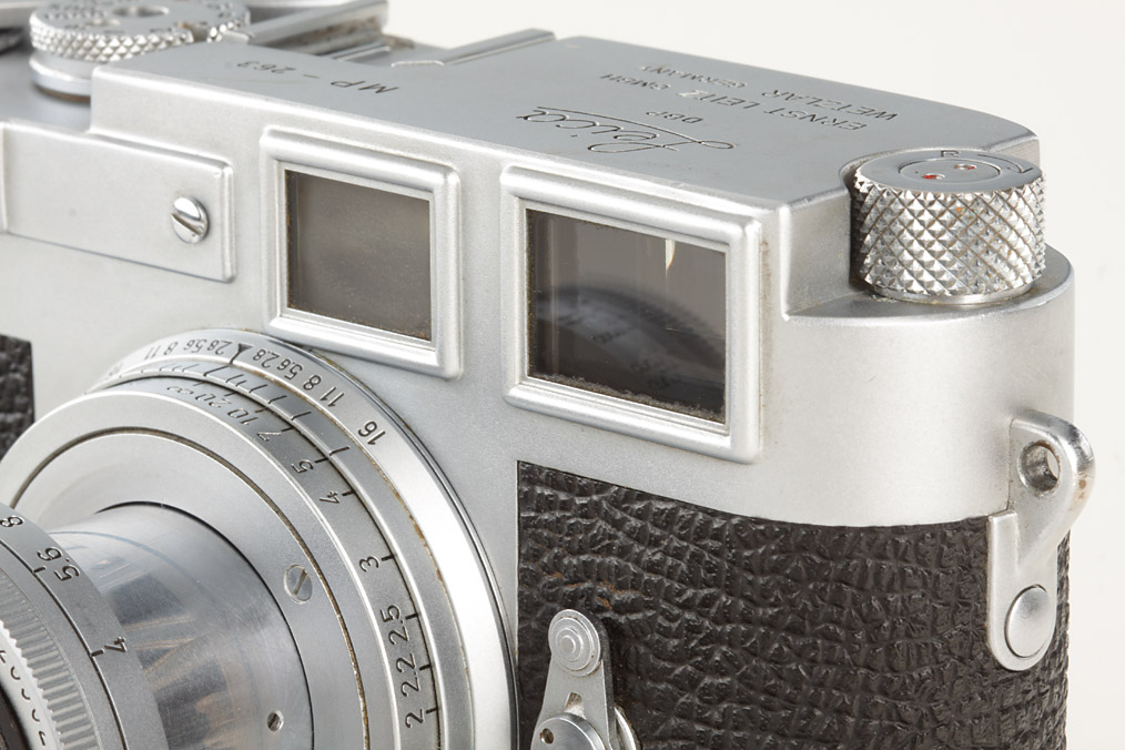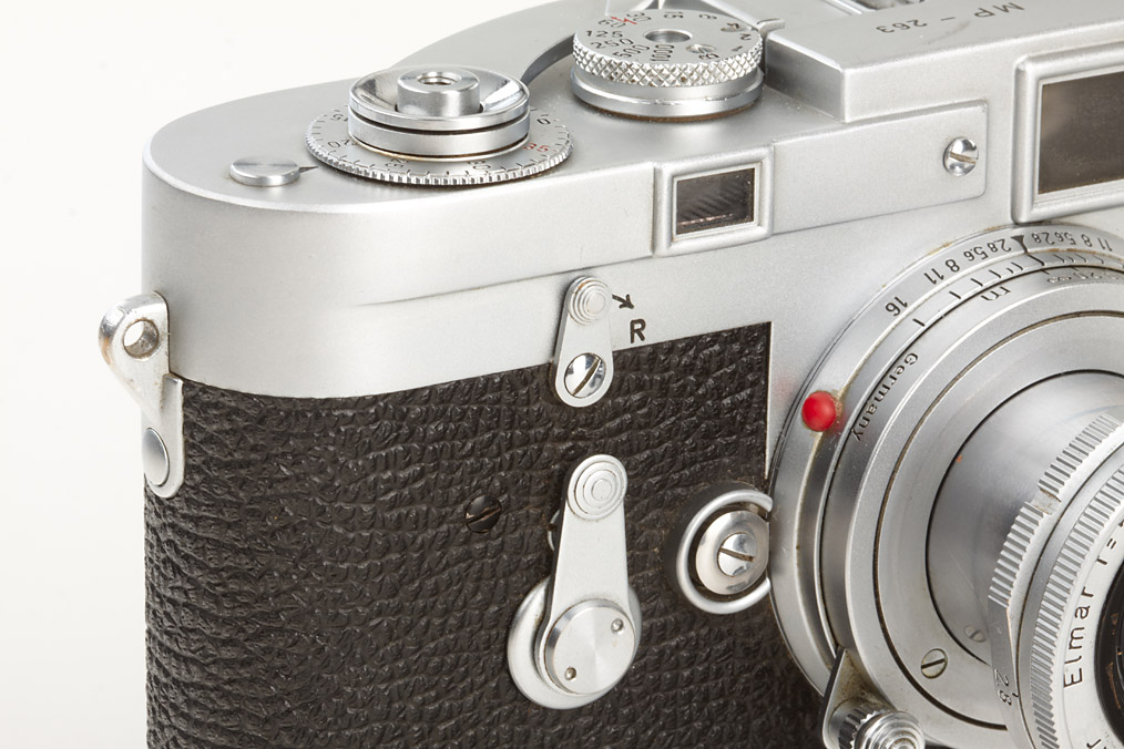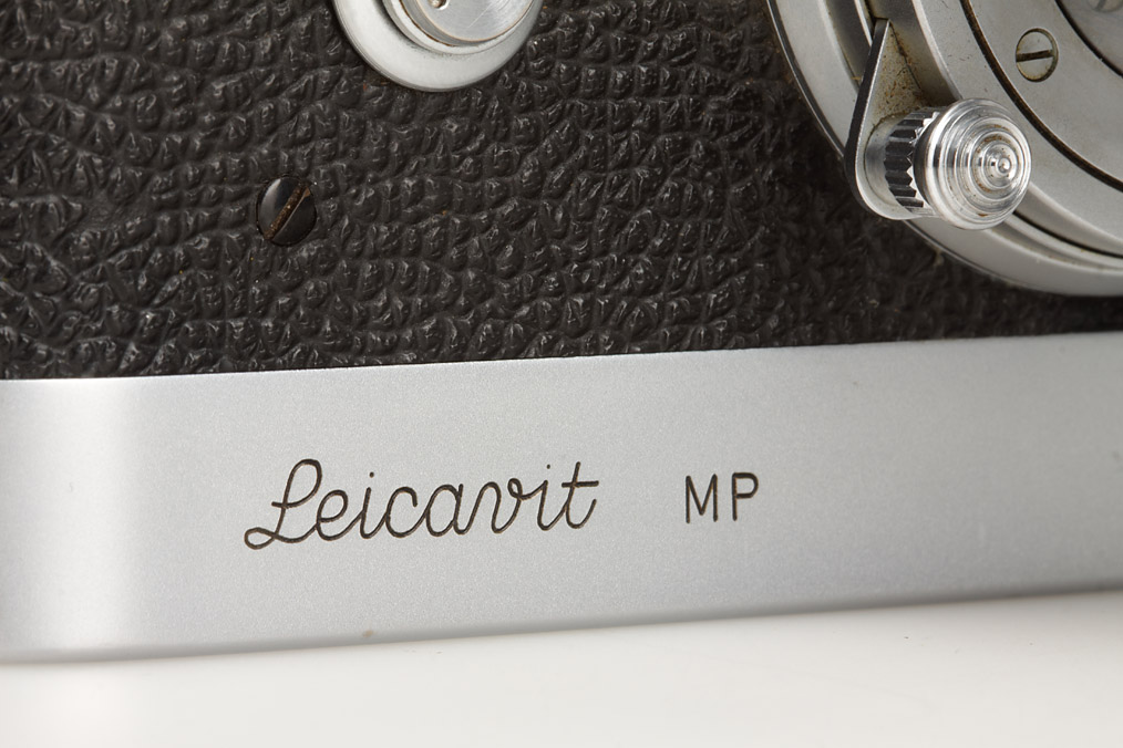 chrome MP in beautiful and perfect working condition (self timer adapted by Leitz), with matching Leicavit MP, matching chassis number inside the camera, no dings or dents, Elmar 2.8/5cm no.1620362 (cap)