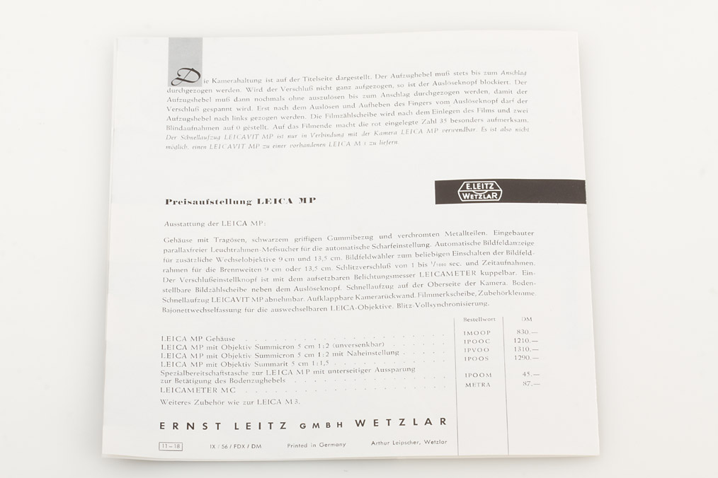 original MP brochure in German, 4 pages (catalogue 11-18 IX/56/FDX/DM)