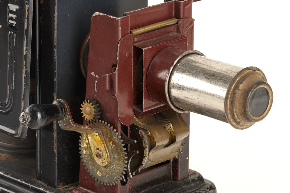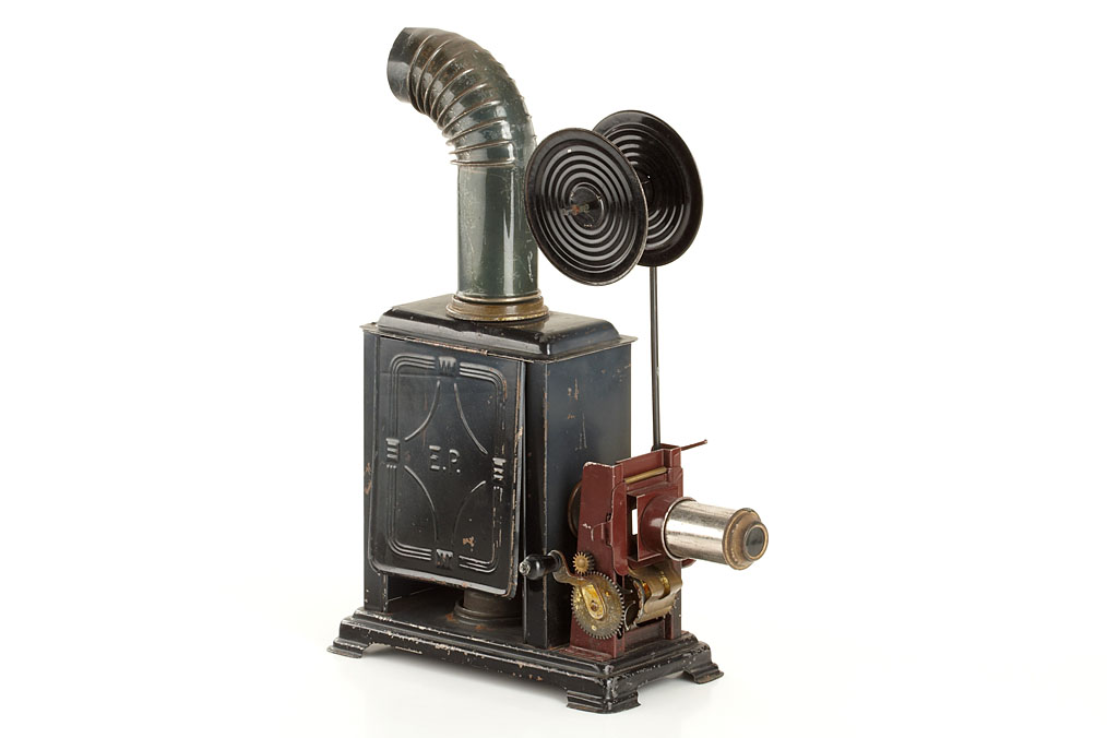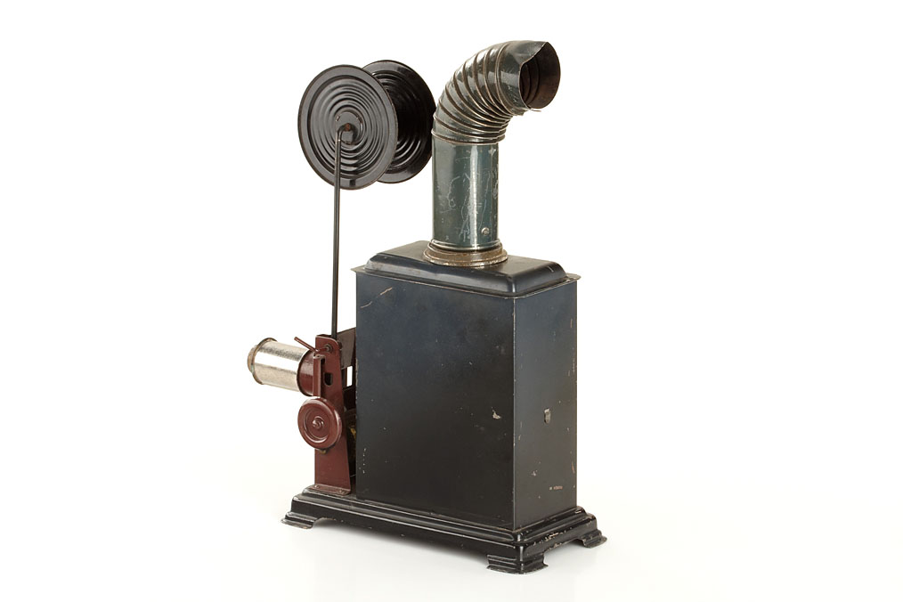nice collection of 3 German box-shaped lanterns, (1) Ernst Plank 'Cinematograph', 'Russian Iron' finish, crank operated Malteser-intermission movement, complete with the original chimney, lens, film spool and the original petrol burner, the rotary shutter is missing, embossed 'E.P.' makers label left side on the door, original cardboard box, height: 32cm, (2) Gebrüder Bing, 'Russian Iron' finish, gold plated 'paws', makers label on left side on the door, with the original chimney and lens, height 23cm, (3) Ernst Plank, 'Russian Iron' finish, gold plated 'paws', makers label on left side on the door, with the original lens, the chimney is missing. Height 18cm