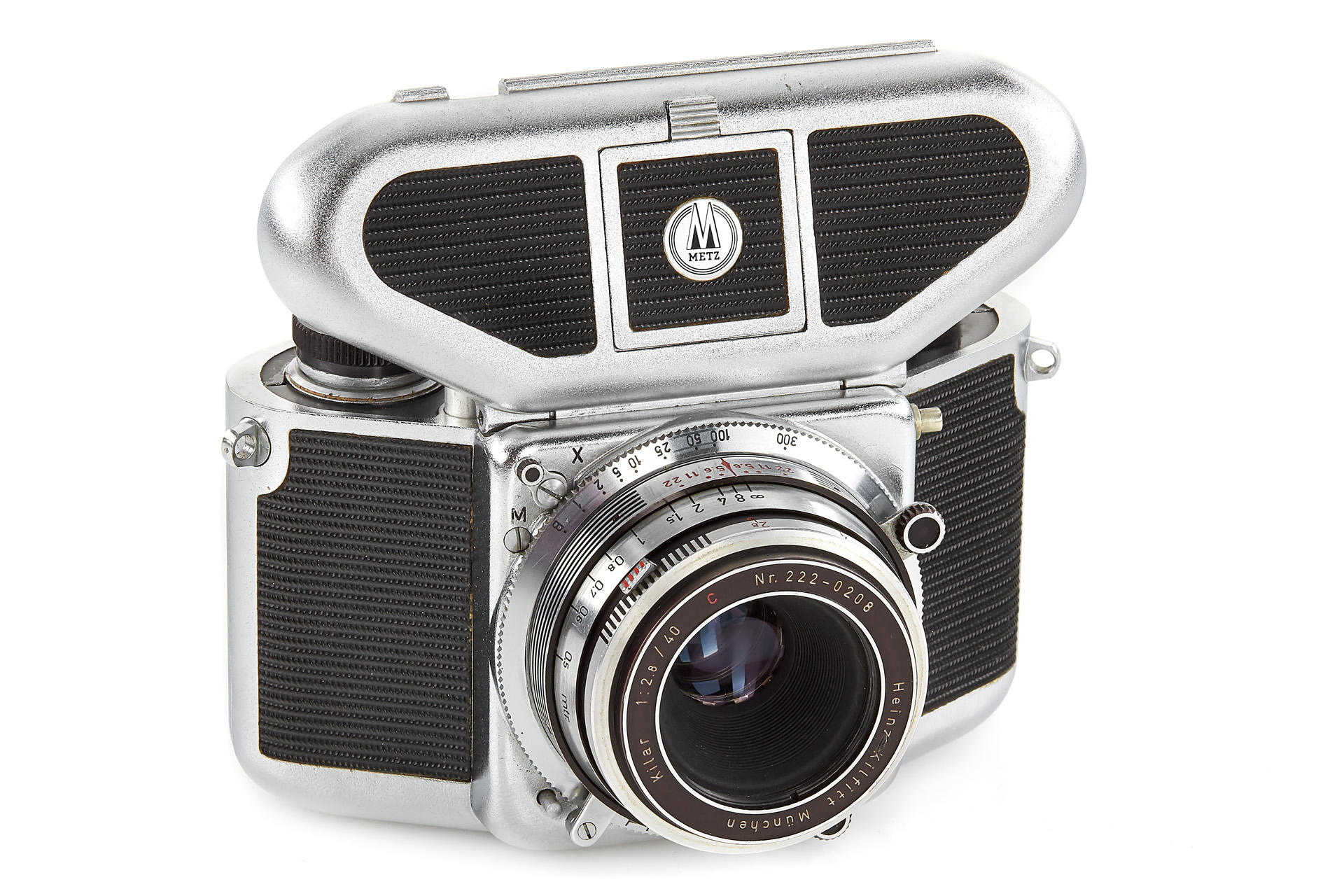 uncommon compact 35mm camera designed by Heinz Kilfitt, with Kilar C 2.8/40mm no.222-0208, near mint condition, with German instructions