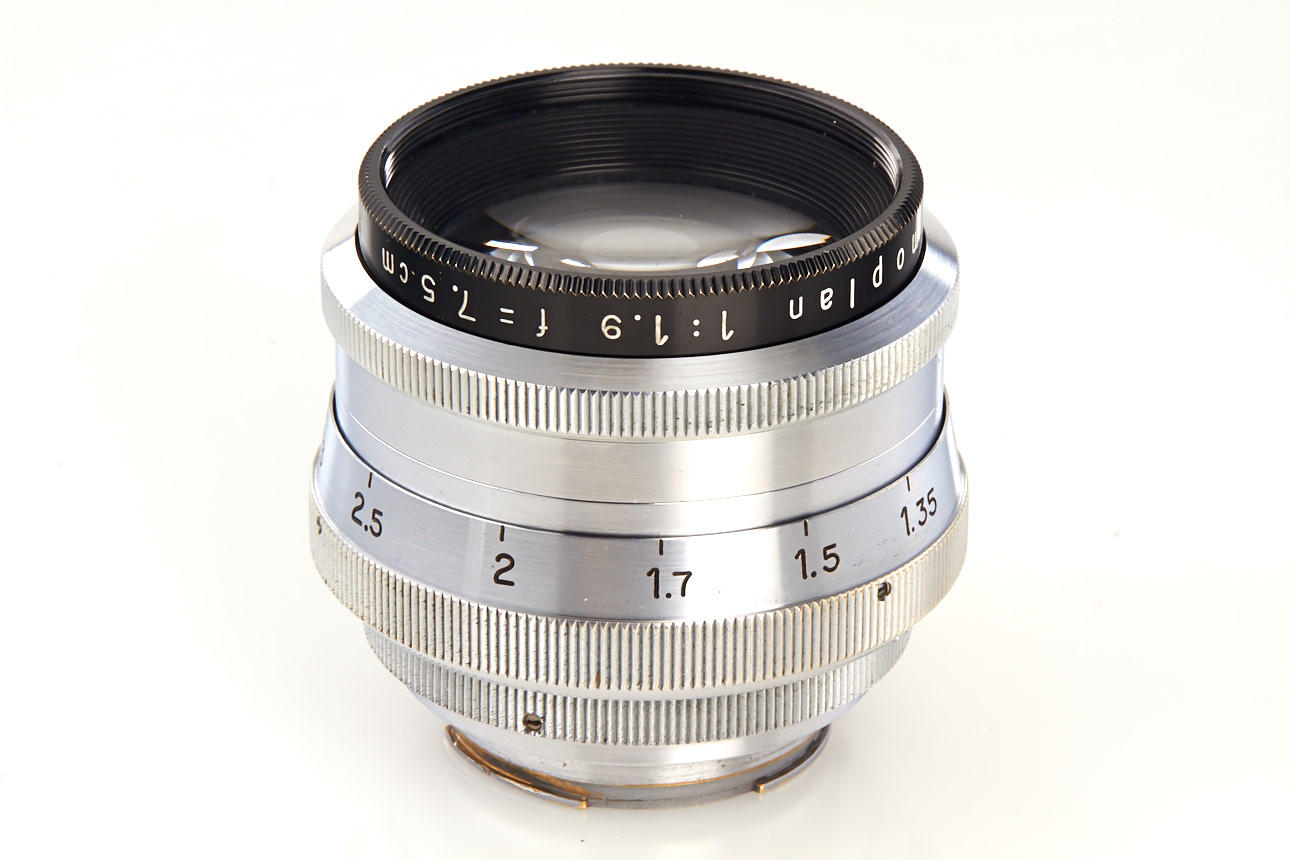 fast portrait lens in original Exakta mount, sought-after heavy pre-war version, in excellent condition, clean optics, with original hood and front cap