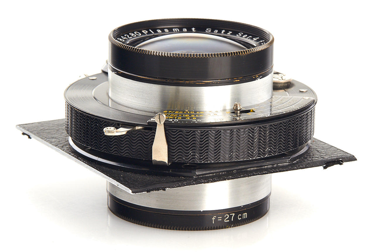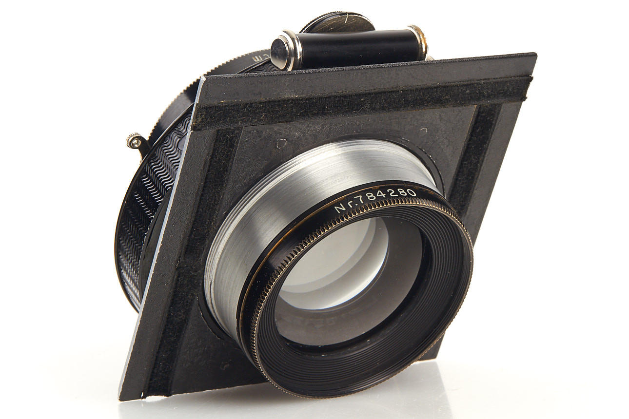 in excellent condition, clean optics, front element f=32cm, rear element f=27cm, original front cap, in working pneumatic shutter
