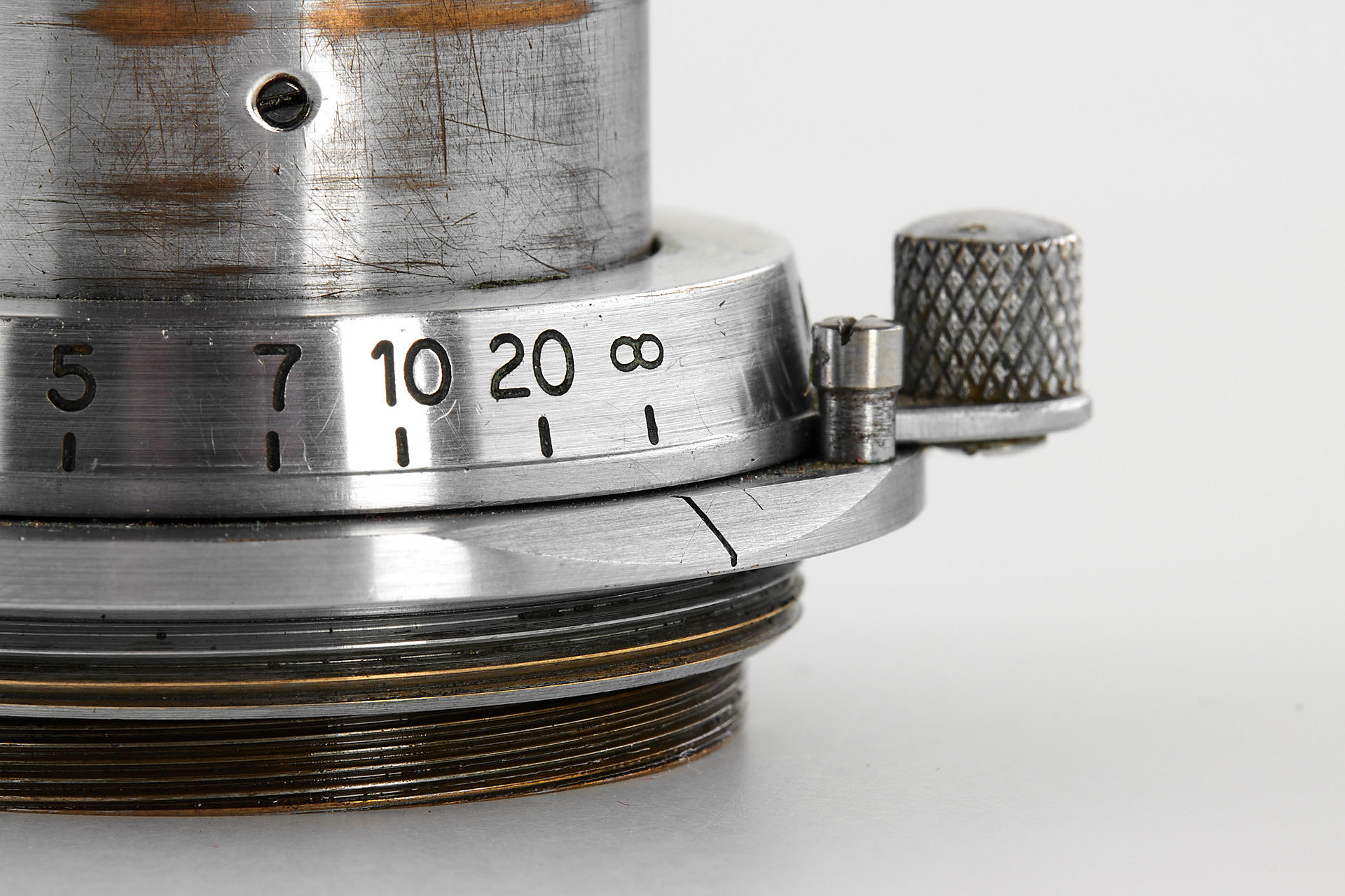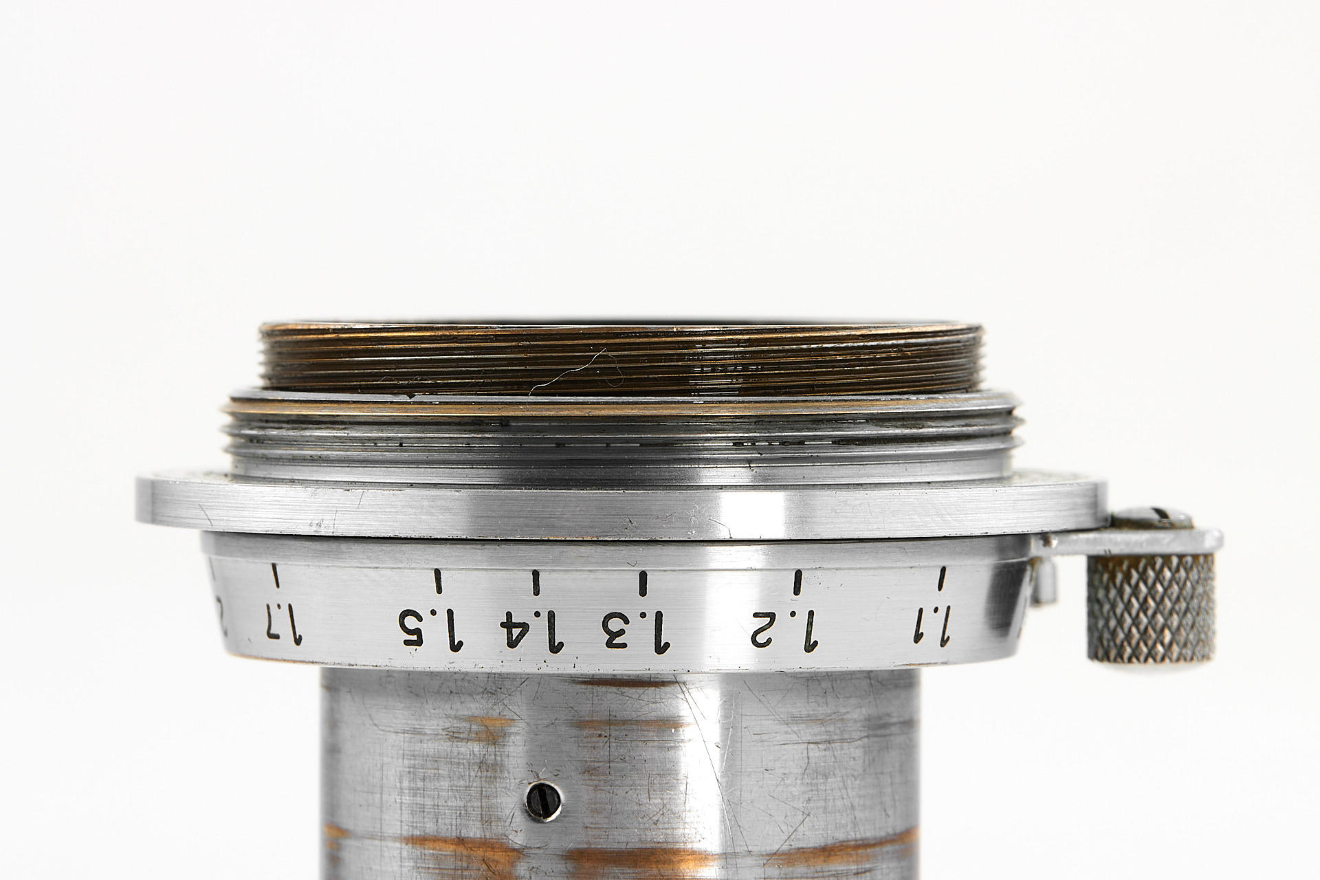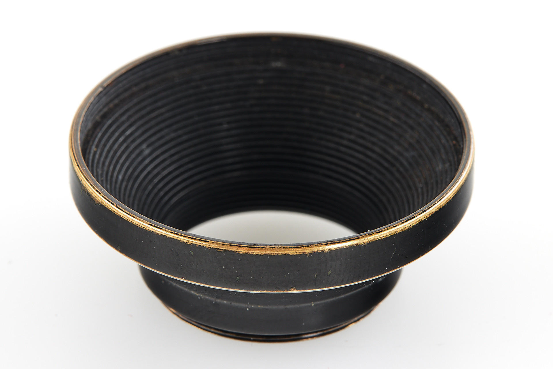 an extremely rare and sought-after Makro Plasmat in original, collapsible rangefinder-coupled Leica M39 mount, engraved on the barrel with 'Unverkäufliches-Fabrik-Muster' (factory sample not for sale), in excellent condition (some wear on the collapsible barrel), very good optics (only minimal flaws), with matching brass hood