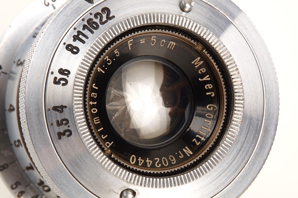 extremely rare original M39 RF coupled chrome Primotar in very good condition, in 'Mushroom' shape like the more common Makro-Plasmat 2.7/5cm, a few small cleaning marks on front lens element, rear cap and TTH keeper