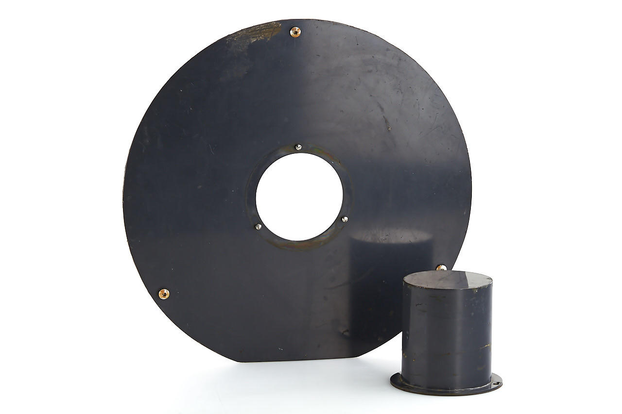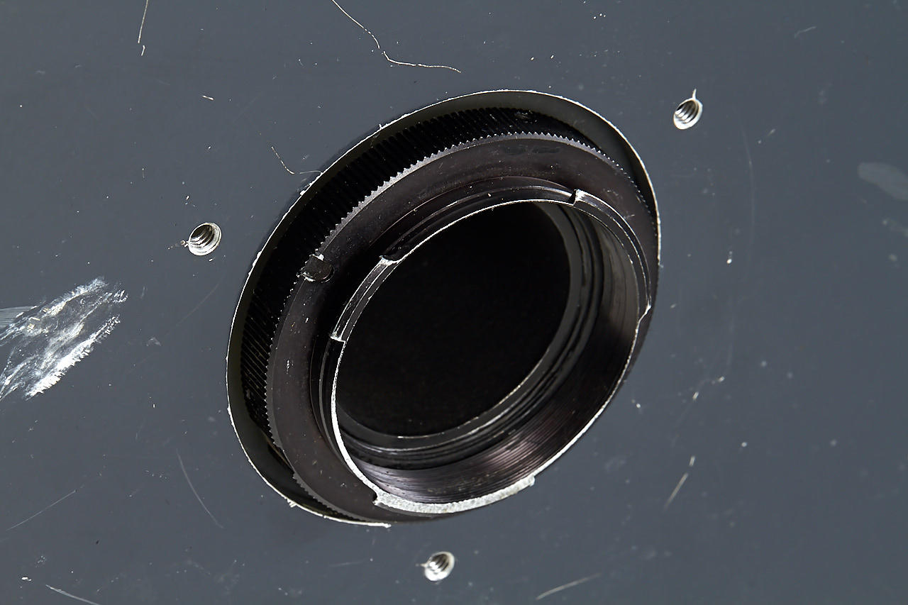 An unique and very impressive mirror lens, possibly a prototype or made to order, about 2500mm focal length, in Leica R mount, front lens diameter almost 40cm, weight approx. 31kg, internally engraved on the metering scale with "Helipot Corp. So. Pasadena California", in grey paint, possibly indicating its military background. According to the former owner, this lens was once in the possession of Dr. Wangrosch, the then director of the Leitz Museum, Wetzlar. However, there is no proof for this and the lens is most unlikely coming from any of the Leitz factories.